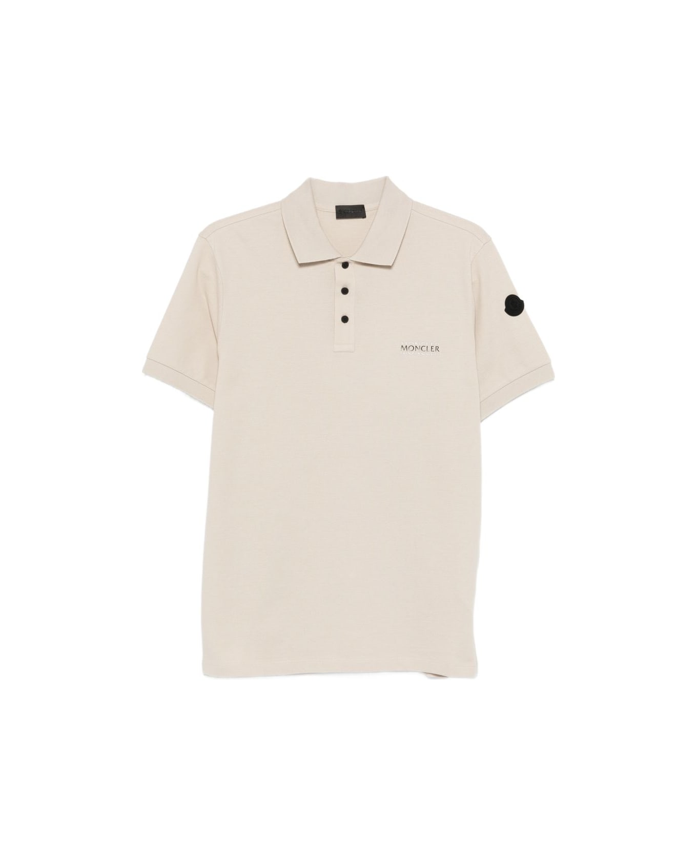 beige logo patch button placket short sleeves polo collar embroidered logo