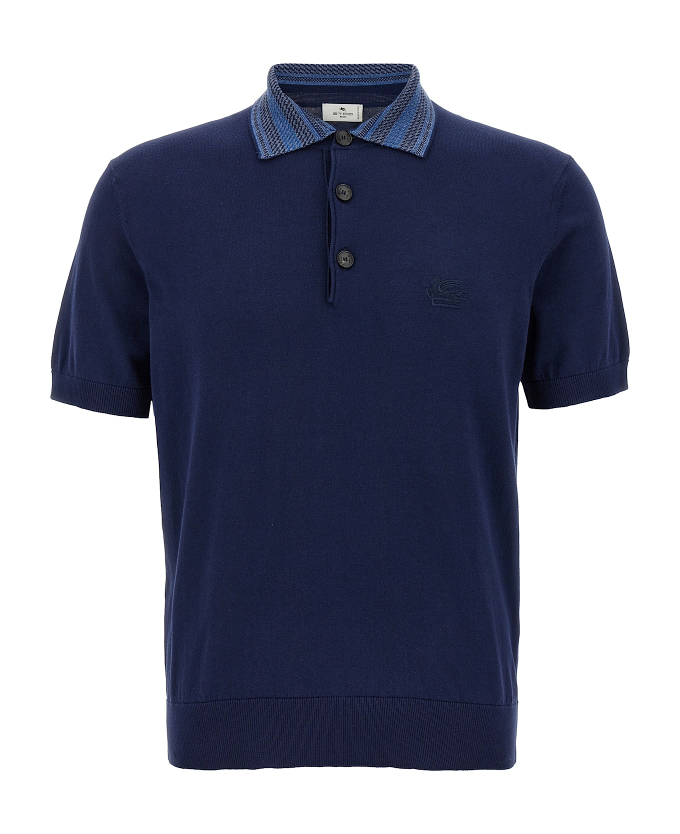 Cotton knit polo shirt with crochet collar, front 'Pegaso' logo embroidery, collar and buttons, and short sleeves. Composition: 100% cotton
