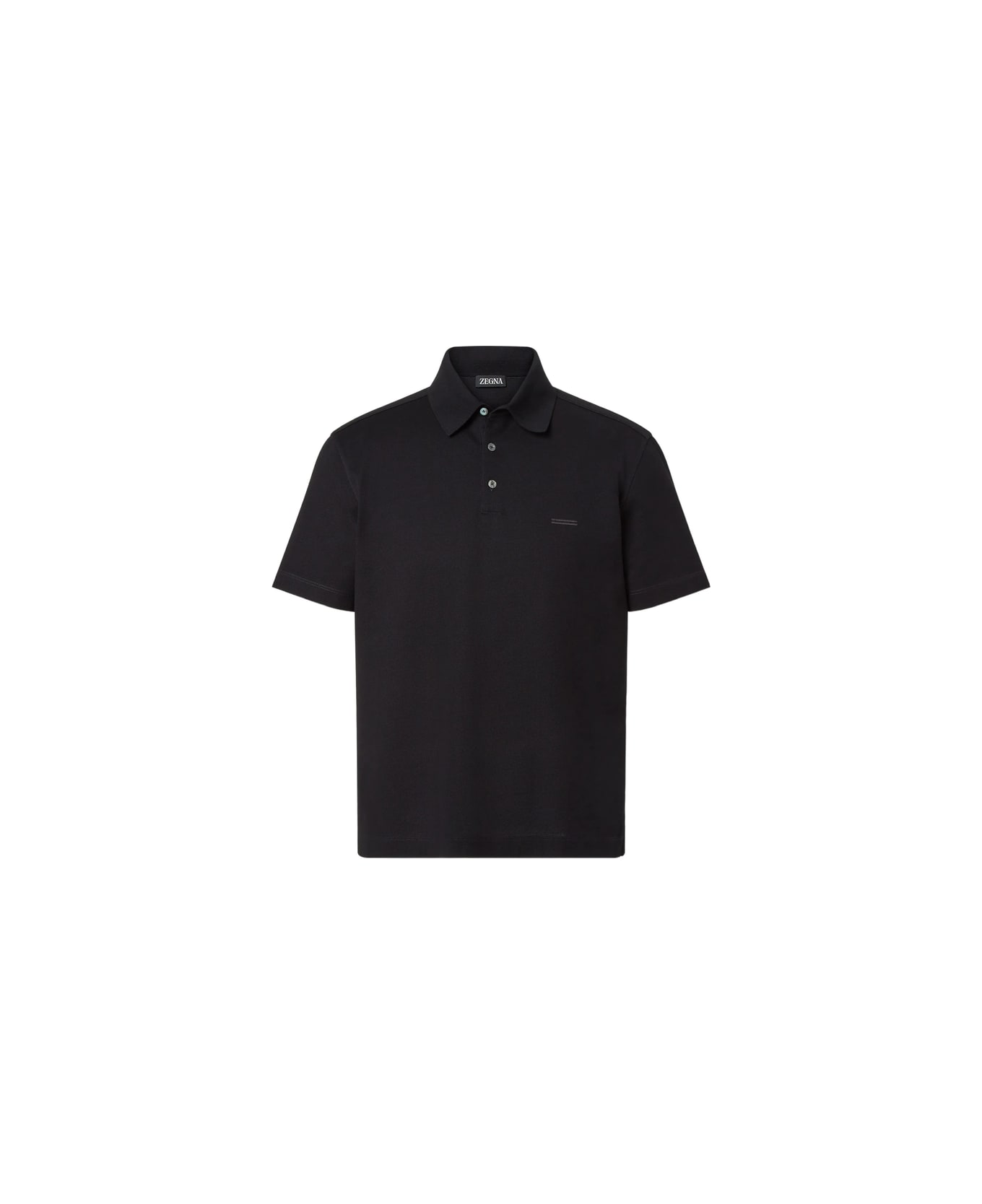black cotton short sleeves button fastening tonal logo detail point collar