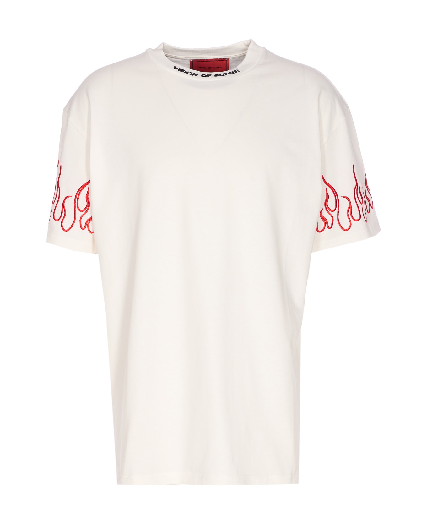 Vision Of Super white t-shirt, crewneck, embroidered logo on the front, embroidered flames, inner logo. Composition: 100% Cotton