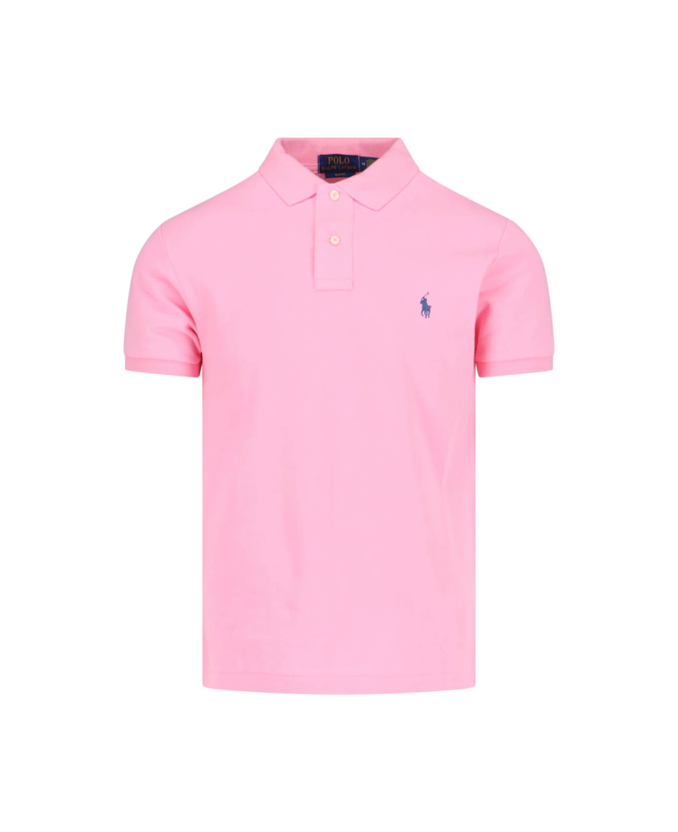 Polo logo polo shirt Ralph Lauren, in pink cotton, classic collar, short sleeves, button closure, blue logo embroidery on the front, straight hem. Composition: 100% Cotton