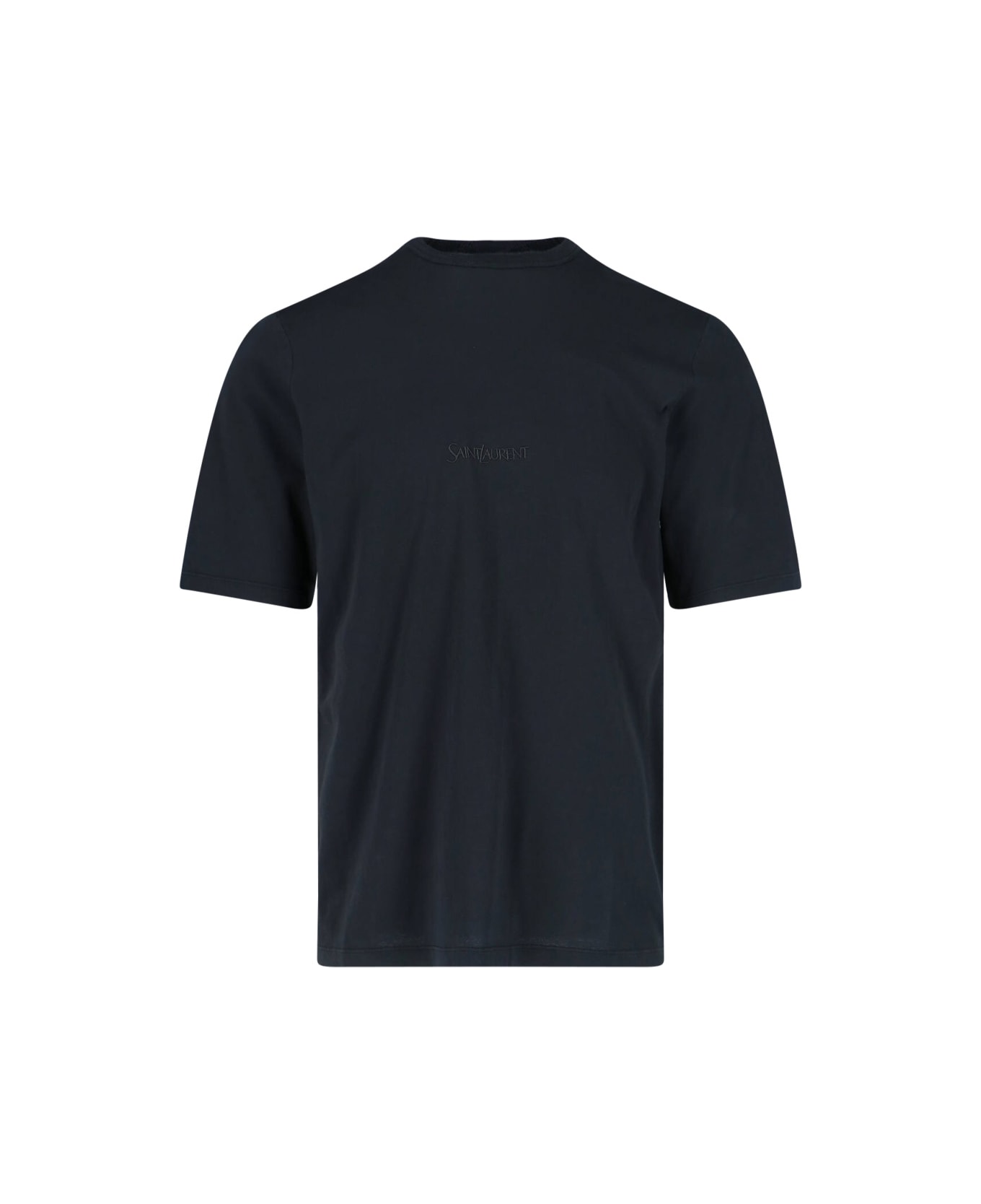 Saint Laurent logo T-shirt in black cotton with crewneck, short sleeves, tone-on-tone embroidered logo, and straight hem. Composition: 100% Cotton