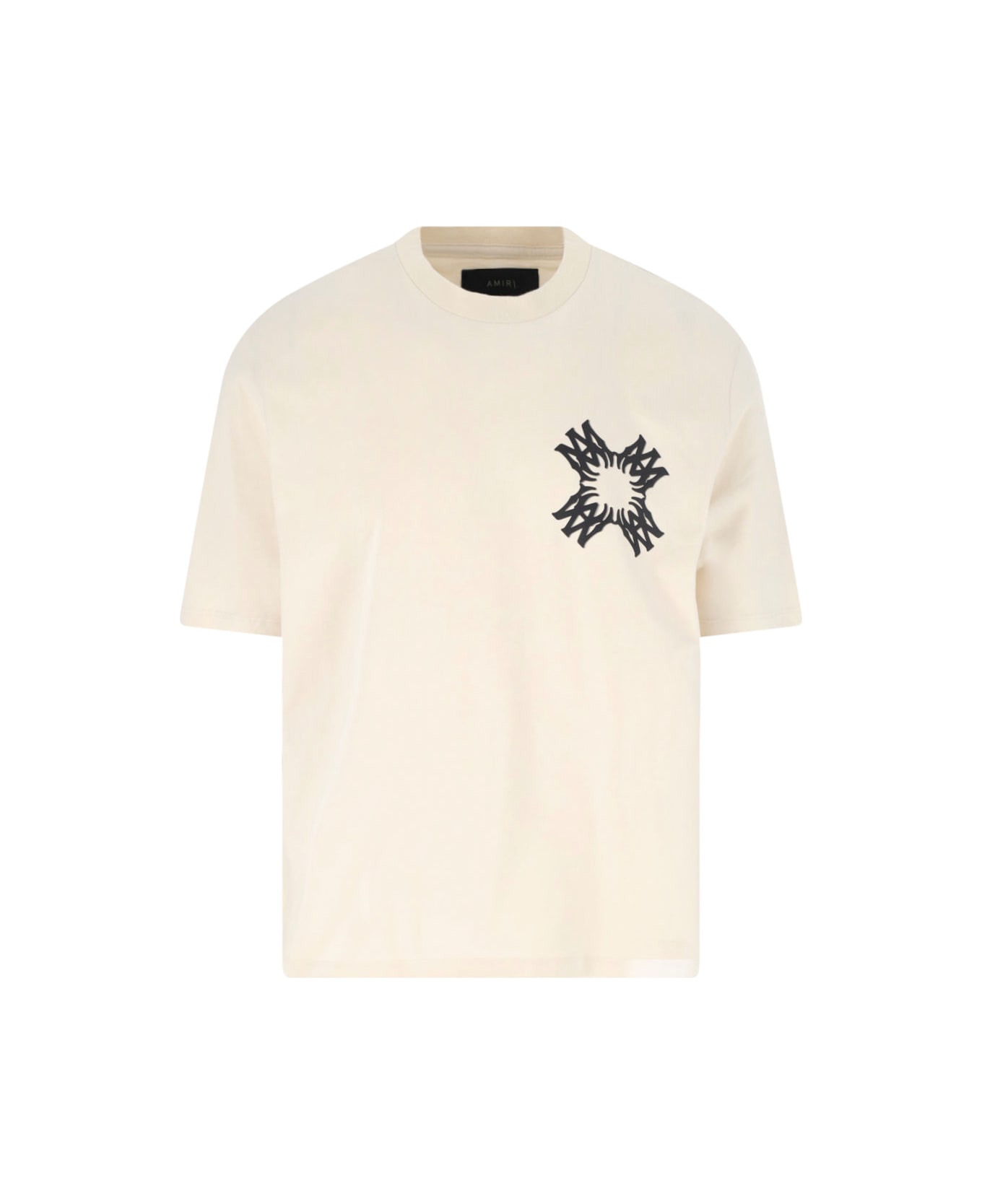 Amiri 'Ma Quad' cream cotton crew neck t-shirt with short sleeves, black logo print on the chest, maxi black logo print on the back, straight hem. Composition: 100% Cotton Composition: 100% Cotton