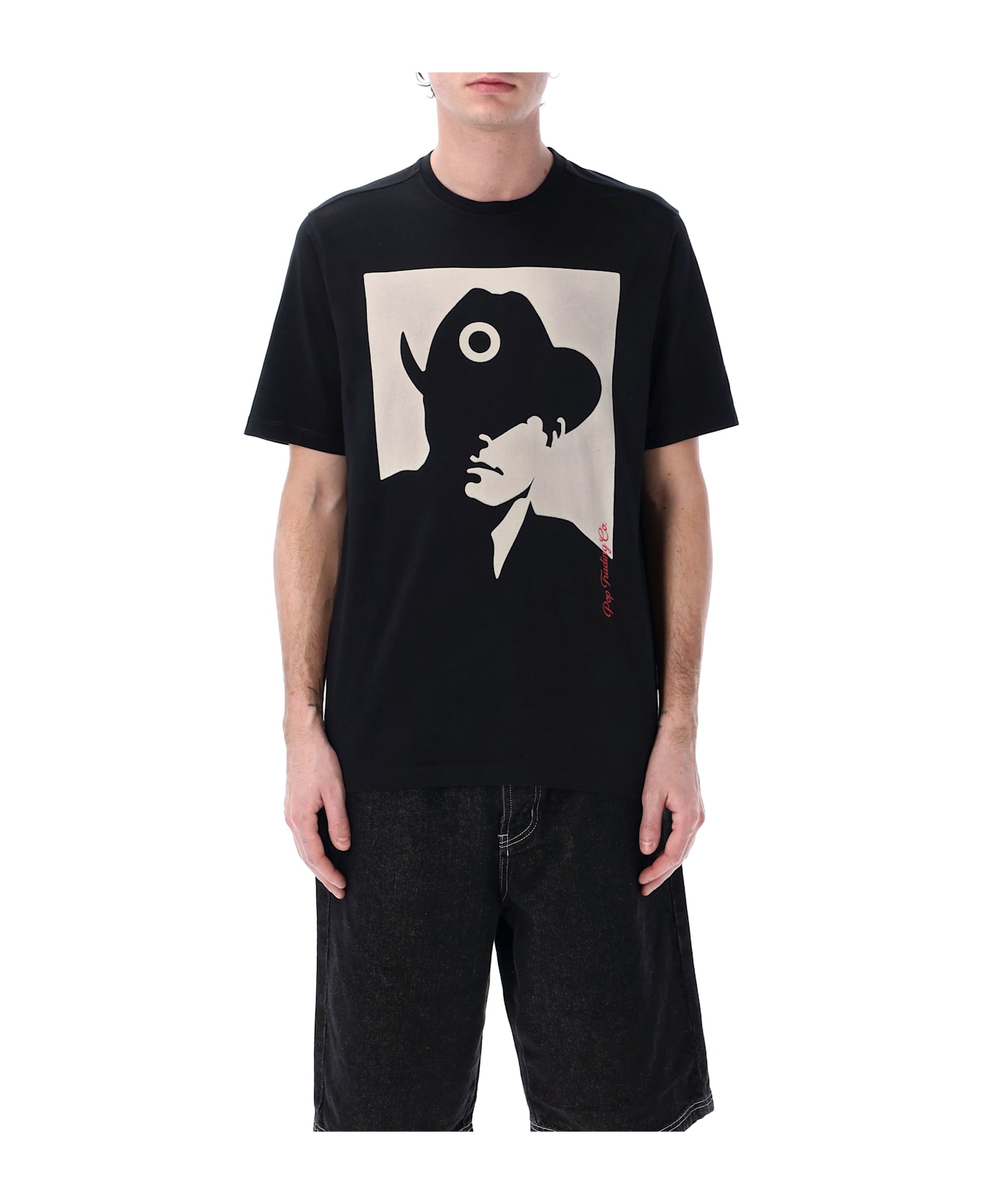 Pop Man T-shirt By Pop Trading Company. Featuring: Cotton Jersey Ribbed Crewneck Short Sleeves Man Artwork Discharge Print On The Center Front White Pop Logo Printed On Back Neck Side Slits At Bottom Hem Regular Fit Model Il 1,90 M And Wears Size L