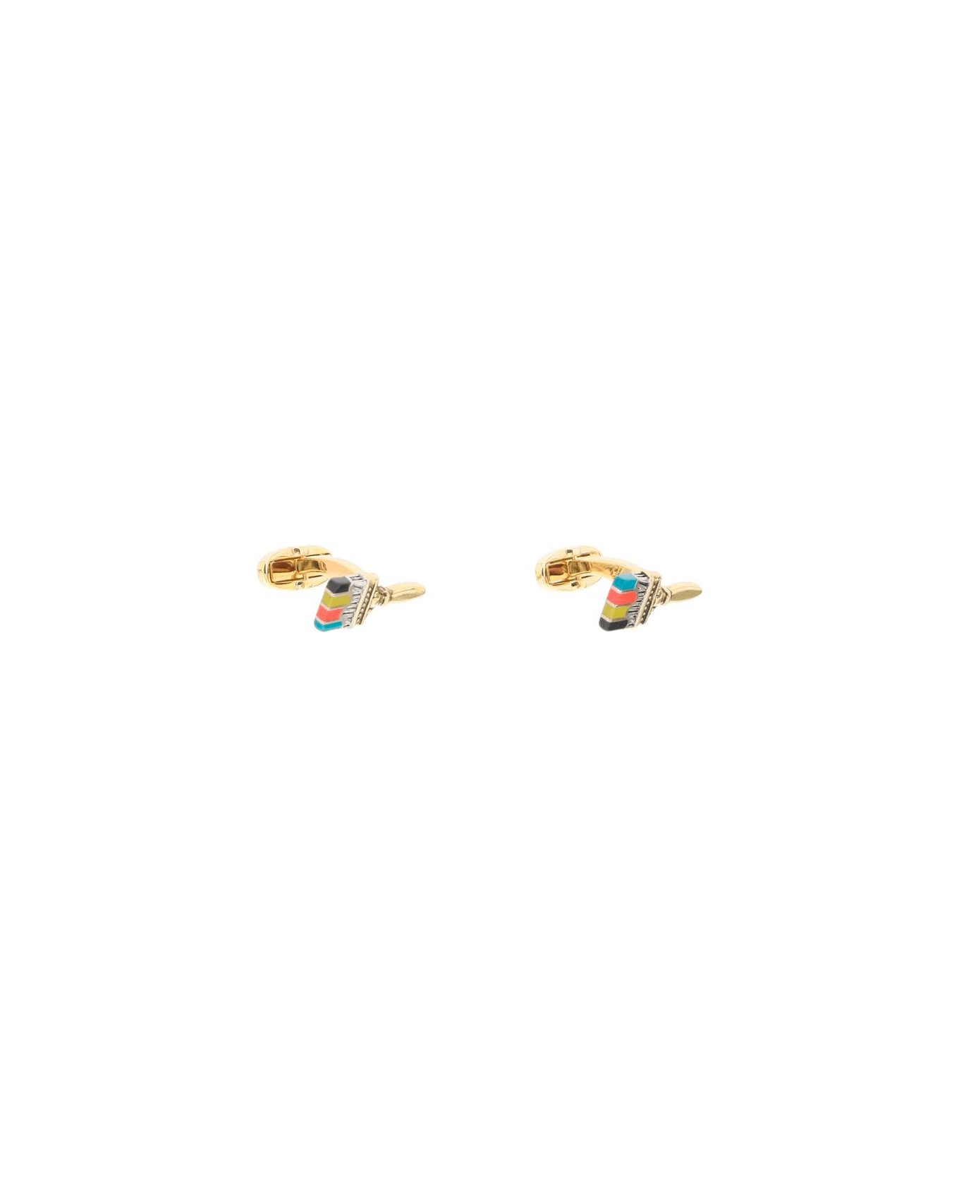 Paint brush cufflinks by Paul Smith in gold-finish copper and zinc, with multicolor Artist Stripe motif. Engraved logo on the closure. Composition: 70% CU, 30% ZN