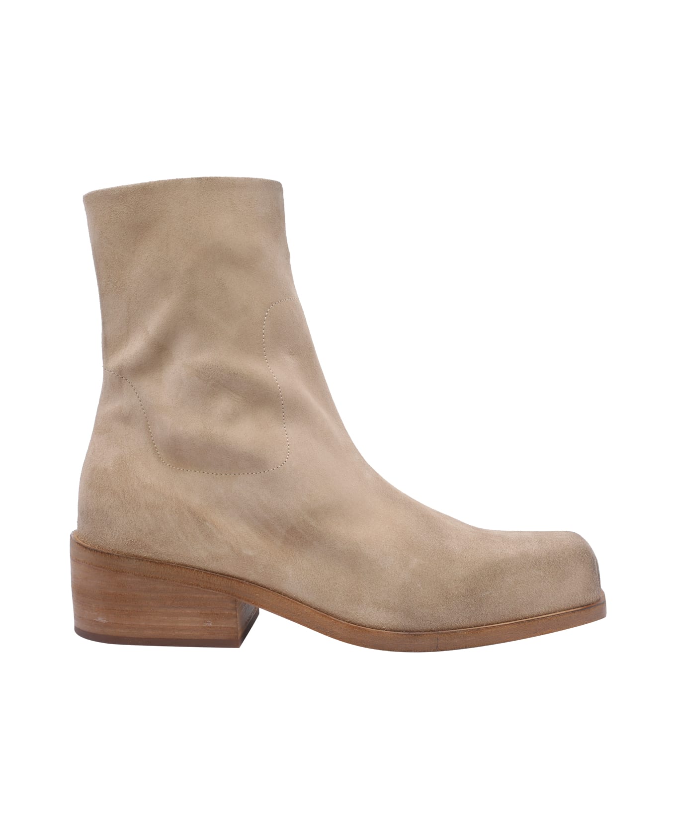 Marsell beige Cassello booties, square toe, suede upper, lateral zip closure Composition: 100% Suede Leather/leather Sole