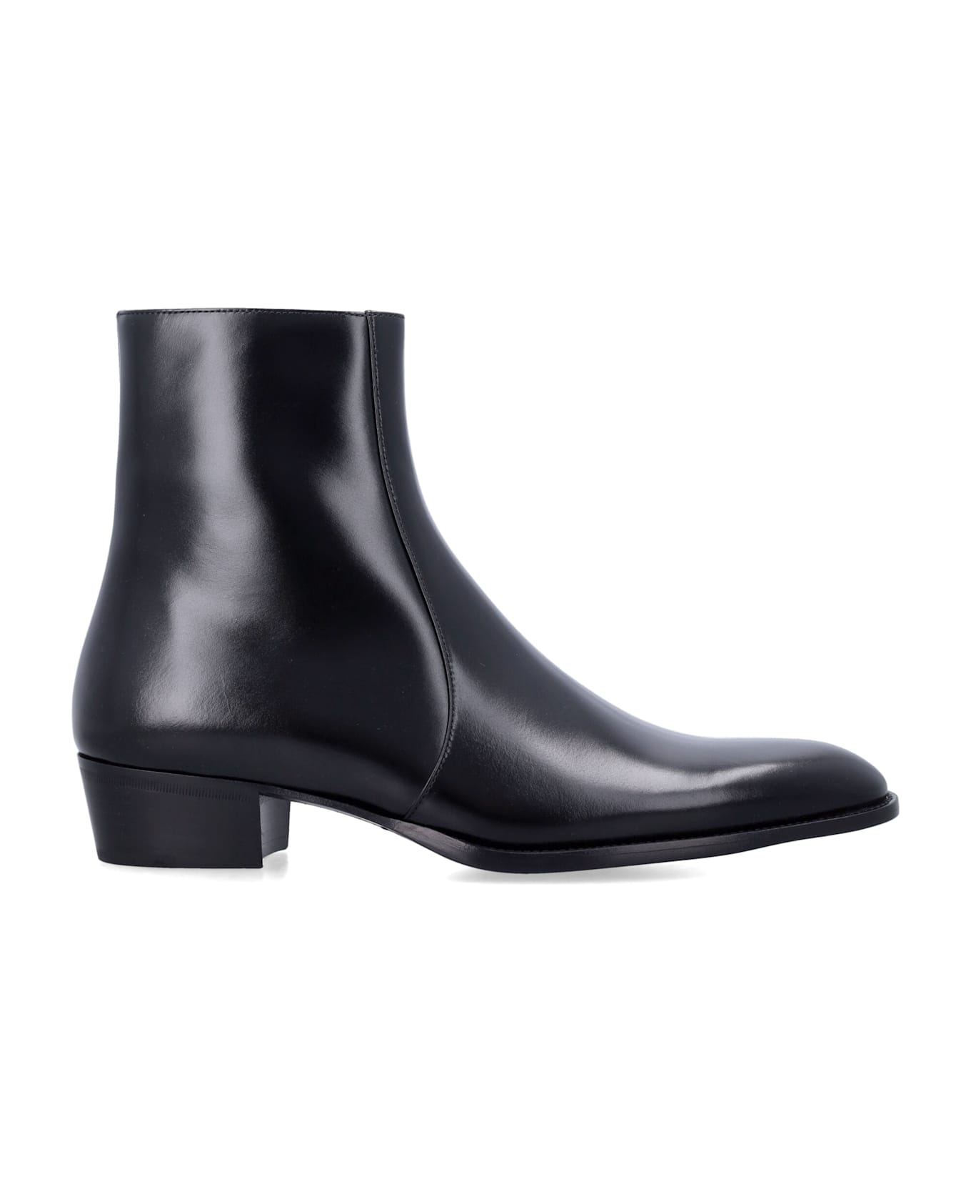 The Roman Ankle Boots By Saint Laurent Express Timeless Sophistication Through Clean Lines And Exquisite Craftsmanship. Made From Smooth Leather, They Feature An Almond Toe And A Sleek Silhouette Set On A Cuban Heel For A Refined Yet Contemporary Attitude. The Side Zip Ensures A Comfortable Fit, Making Them A Versatile Choice For Everyday Elegance. Smooth Leather Upper