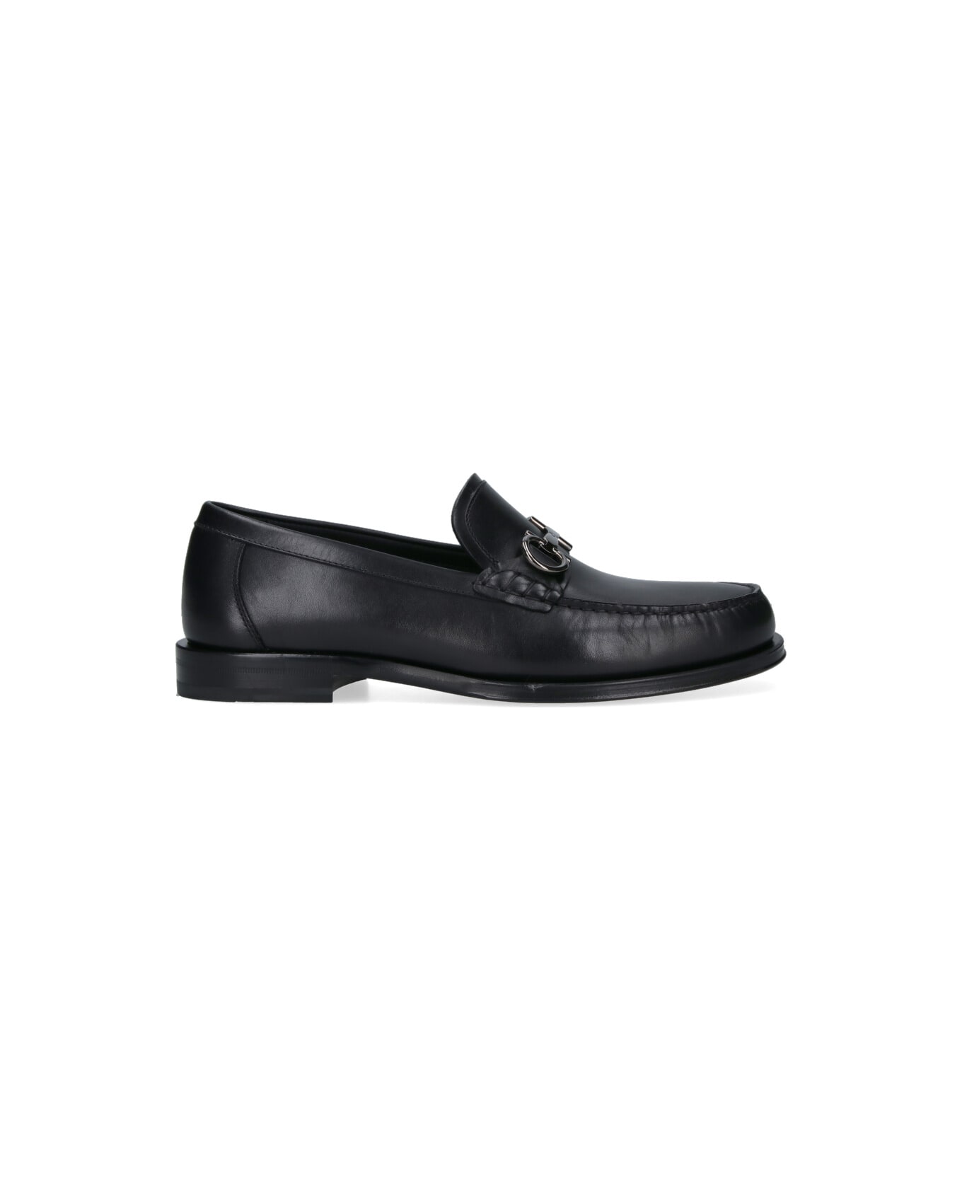 Ferragamo "Gancini" black calf leather loafers with round toe, silver metal "Gancini" detail on the front, slip-on fit, leather sole. Composition: 100% Calf Leather