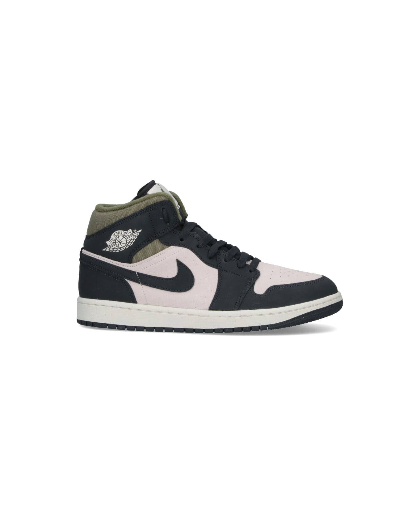 Nike Air Jordan 1 Mid multicolor leather sneakers with round toe, laces, side 'Swoosh' logo, contrasting printed logo on the side, contrast trim, rubber sole. Composition: 100% Leather