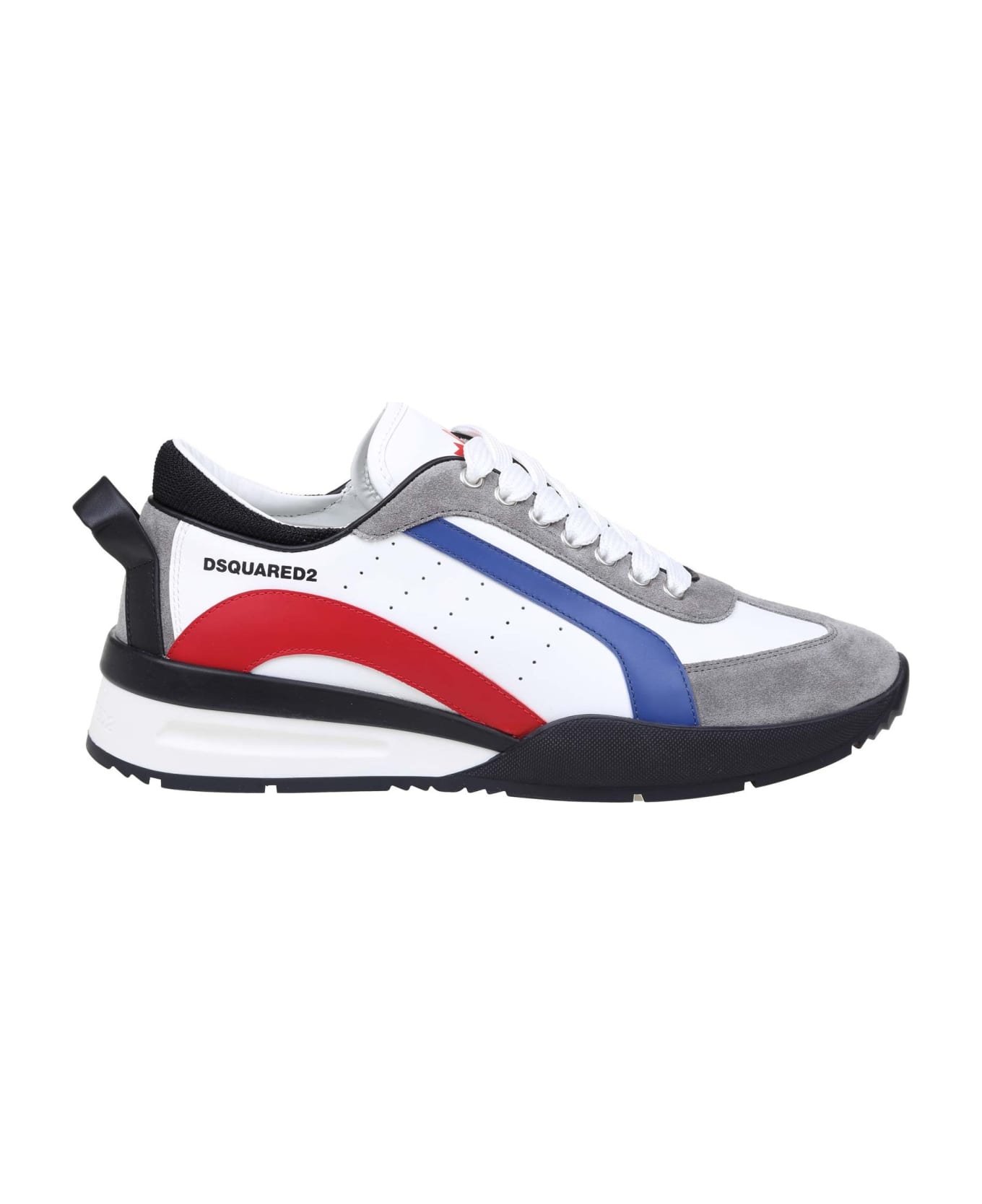 Sneakers in leather and suede gray, white, blue and red color suede details model with round tip closure with laces leather interior rubber sole made in italy