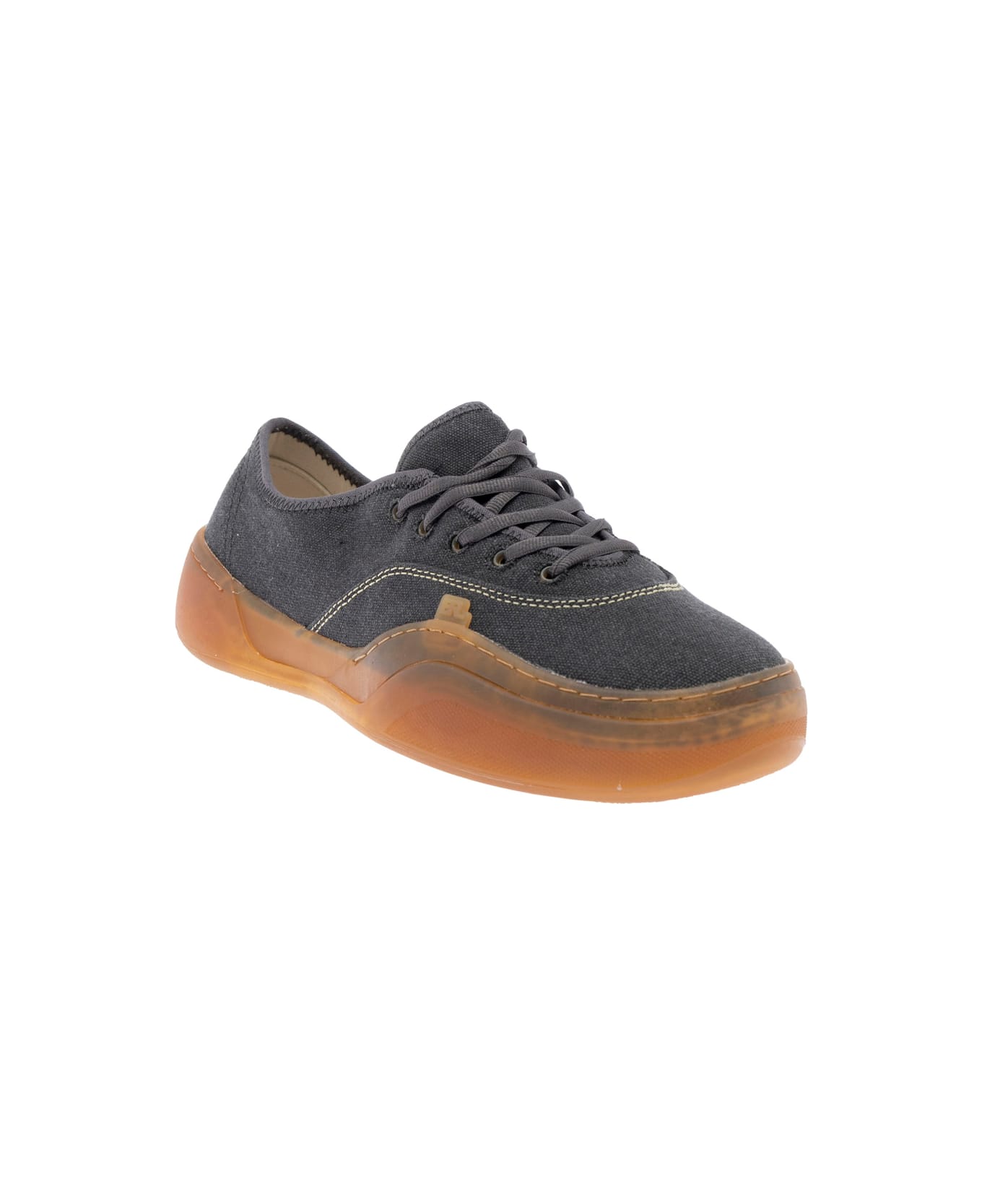 Sneakers Black Low top Round toe Front lace-up closure Contrasting sole Cotton