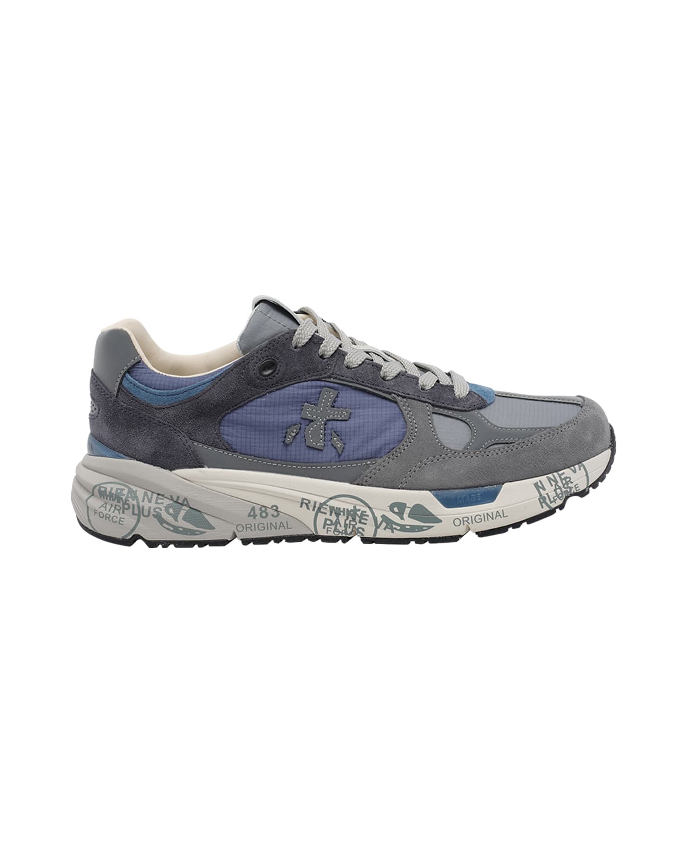 Premiata blue Mase sneakers, suede and fabric upper, round toe, laces closure