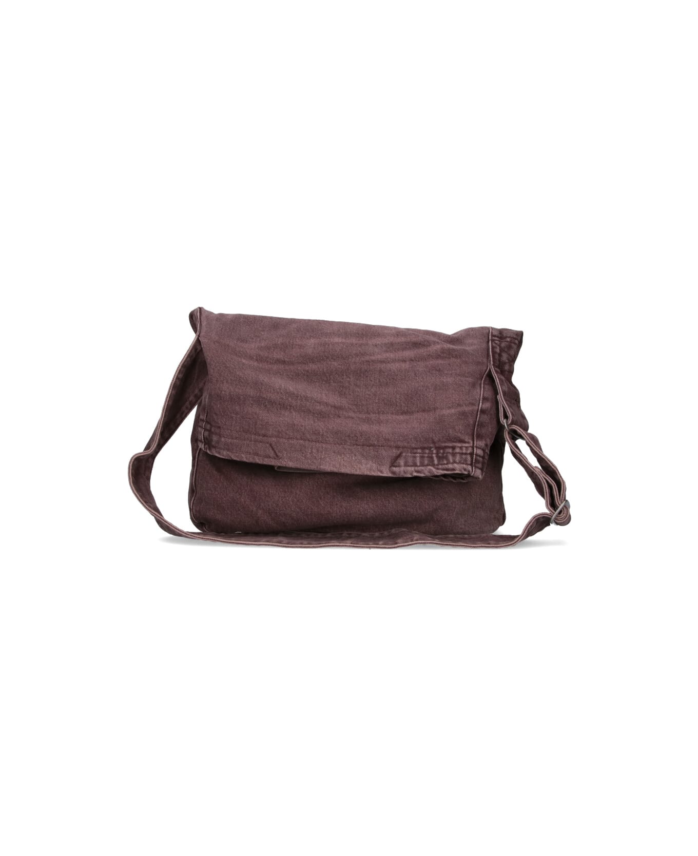 sling Bag shoulder bag Our Legacy in brown organic cotton denim, adjustable top shoulder strap, front flap closure, inner button pocket, single main inner compartment.