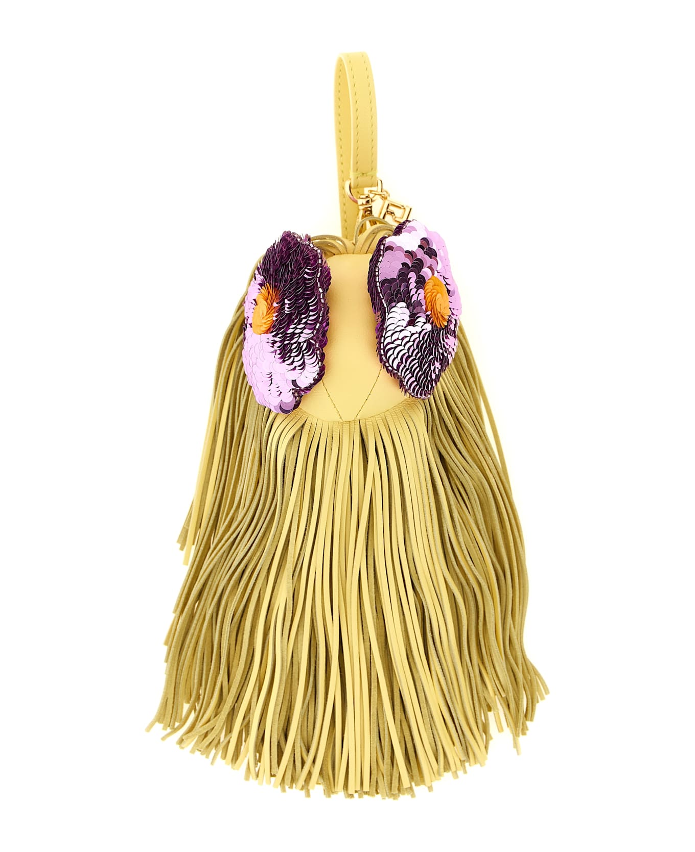 Nappa 'Bag Bugs' charm with tone-on-tone long nappa fringes and front embroidered sequin details, carabiner and FF logo engraved tag. Composition: 100% lamb leather (Ovis aries)