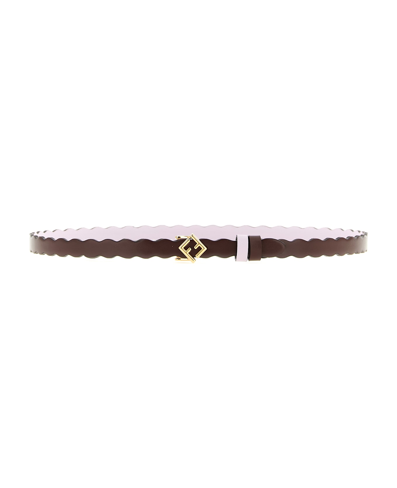 Reversible hammered and smooth leather belt with contoured edges, metal 'FF Diamonds' diagonal cufflink closure. Side A: smooth brown leather