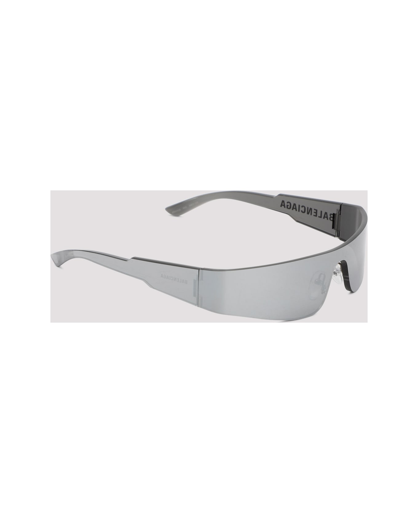 Balenciaga Acetate Mono Rectangle Sunglasses. Silver tone acetate frame with engraved logo in black, lenses with 100% UVA/UVB protection. Adjustable nose pads.