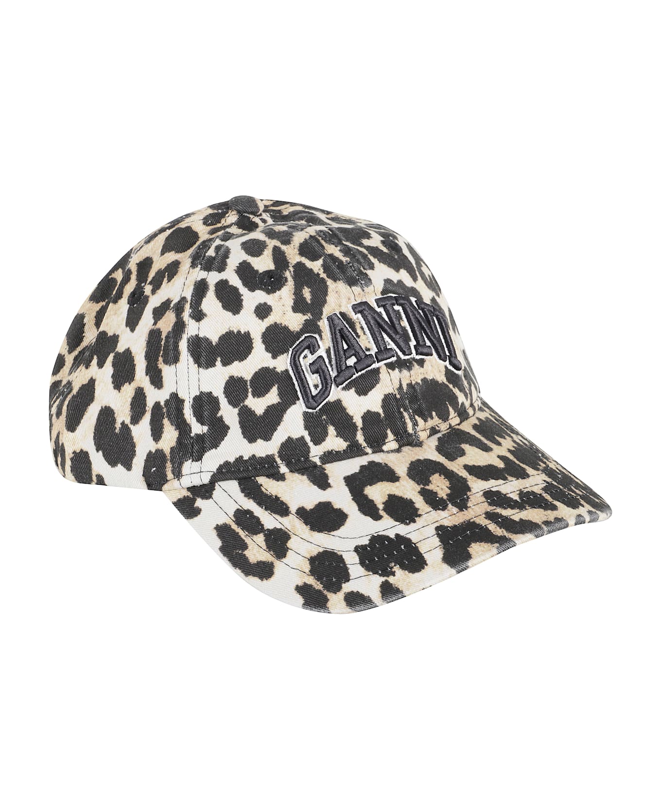 Hat - Ganni - Leopard print - Visor - Embossed embroidered logo on front.