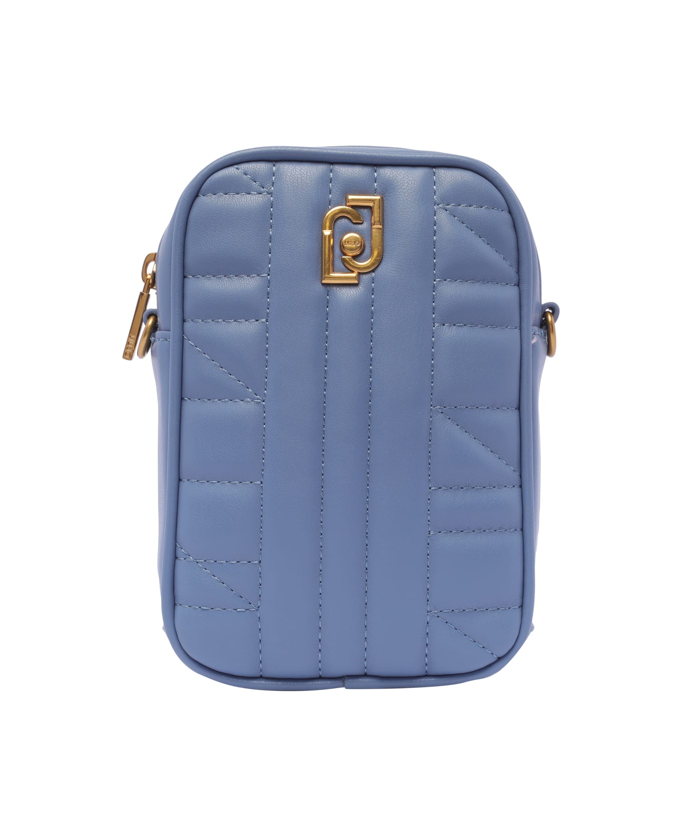 Liu Jo steel blue Logo phone cover, zip closure, 2 inner slots, removable chain strap Composition: 100% Polyester