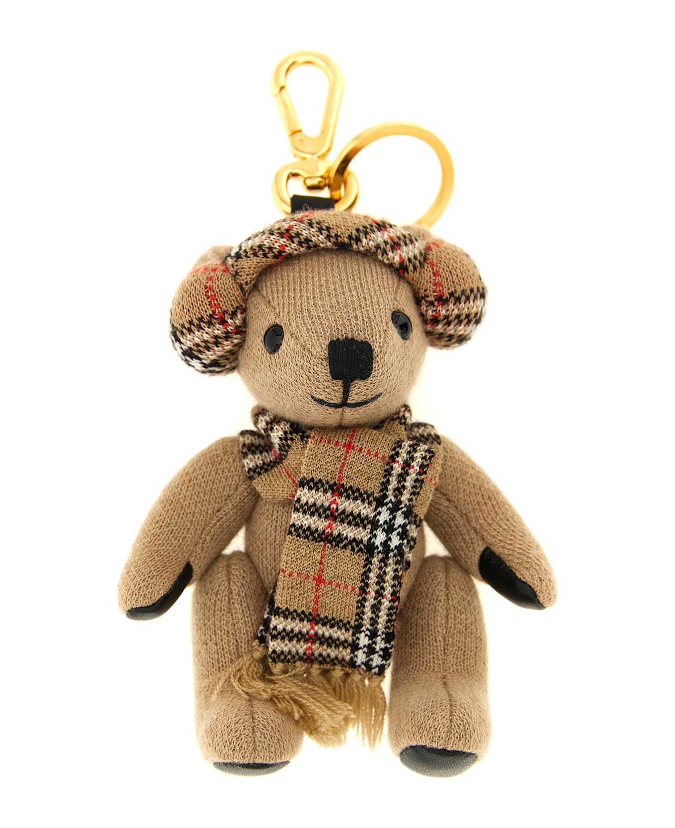 'Orsetto Thomas' wool and cashmere keyring with Burberry Check details, snap hook and metal ring.
