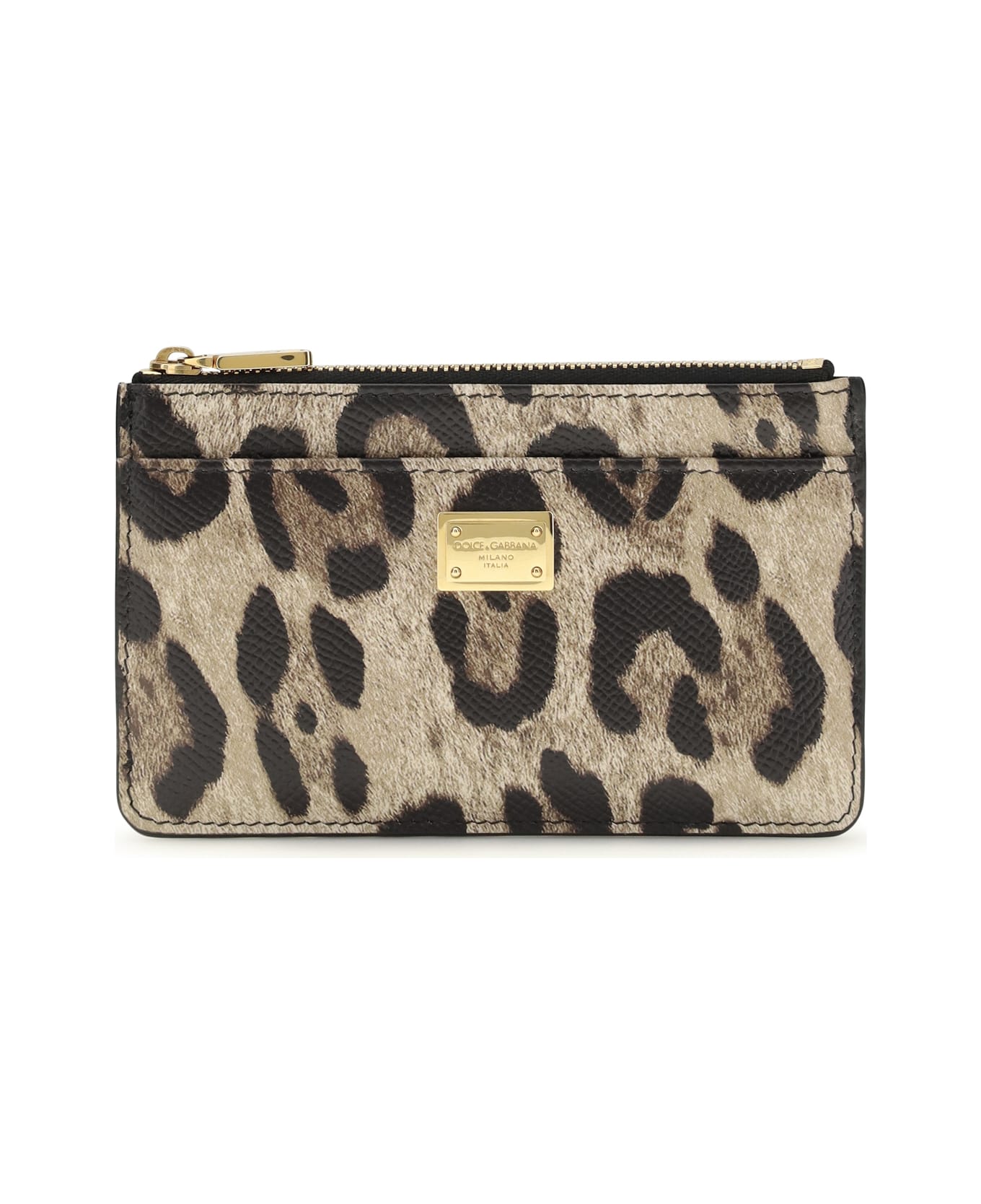 The animal print leather card holder by dolce&gabbana is an elegant and functional accessory, with a zip closure that keeps your cards safe. the vintage brass plating and single-plated external tag add a distinctive touch, while the logo flag label inside emphasizes the authenticity of the brand. the item comes with a bag and a logo box, making it an excellent gift idea. a luxury card holder that combines practicality, style, and a touch of class.
