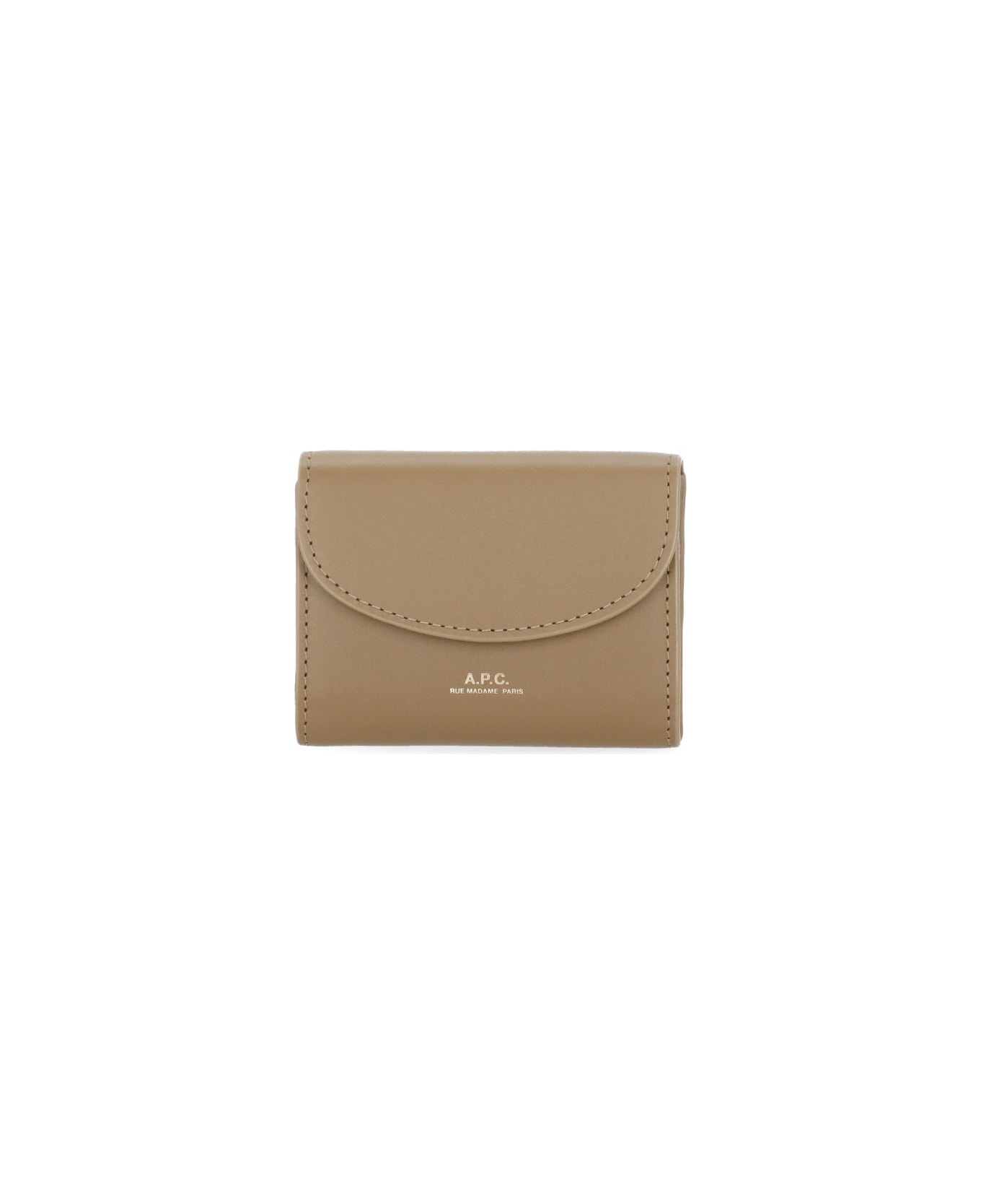 - Brown A. P. C. leather coin holder for woman - Stud buttons fastening - Front golden embossed logo - One internal card holder compartment - Two internal card holder pockets - Two rear card holder pockets