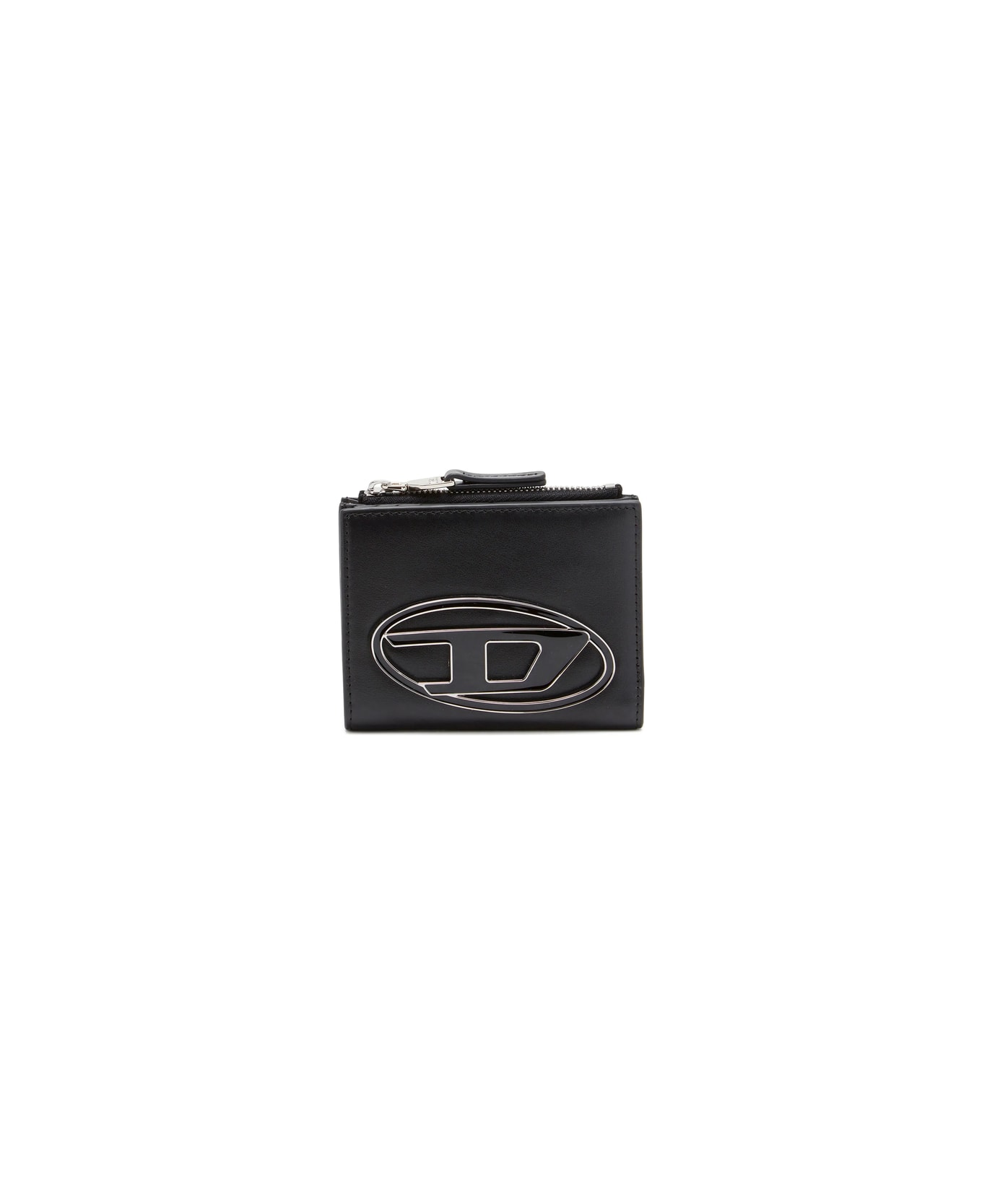black calf leather logo plaque top zip fastening press-stud fastening internal card slots note compartment