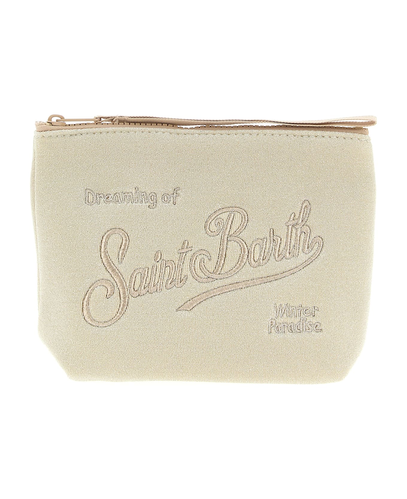 'Aline' lurex clutch bag with tone-on-tone embroidered logo on the front and back, top zip closure. Composition: 70% sbr, 30% polyester