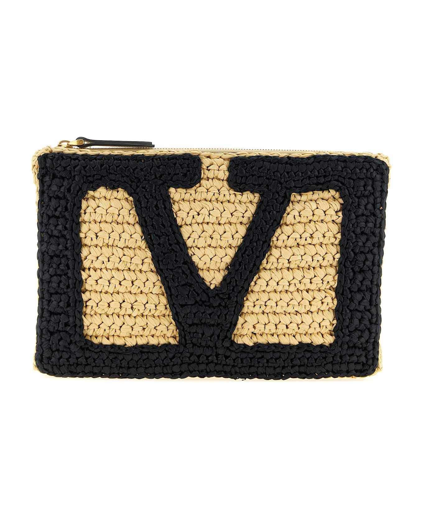 Medium 'Viva Superstar Crochet' clutch bag in synthetic raffia with contrast maxi VLogo Signature on the front, top zip closure with leather tie rod, and canvas lining. Handcrafted product, any imperfections are to be considered characteristics of uniqueness. Composition: 100% viscose