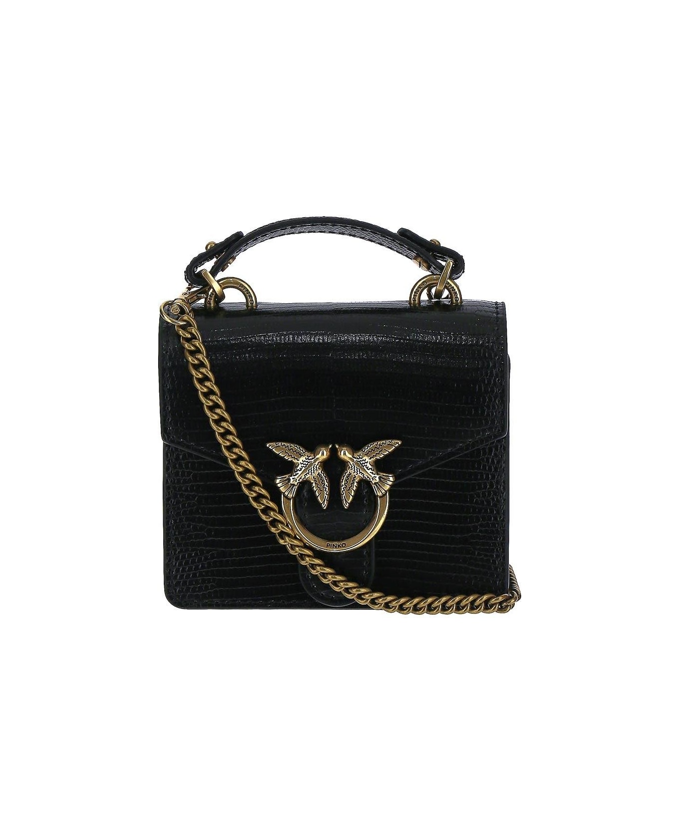 Pinko bag in black leather with logo buckle. The item is featured by detachable chain, gold-toned hardware and magnetic closure.