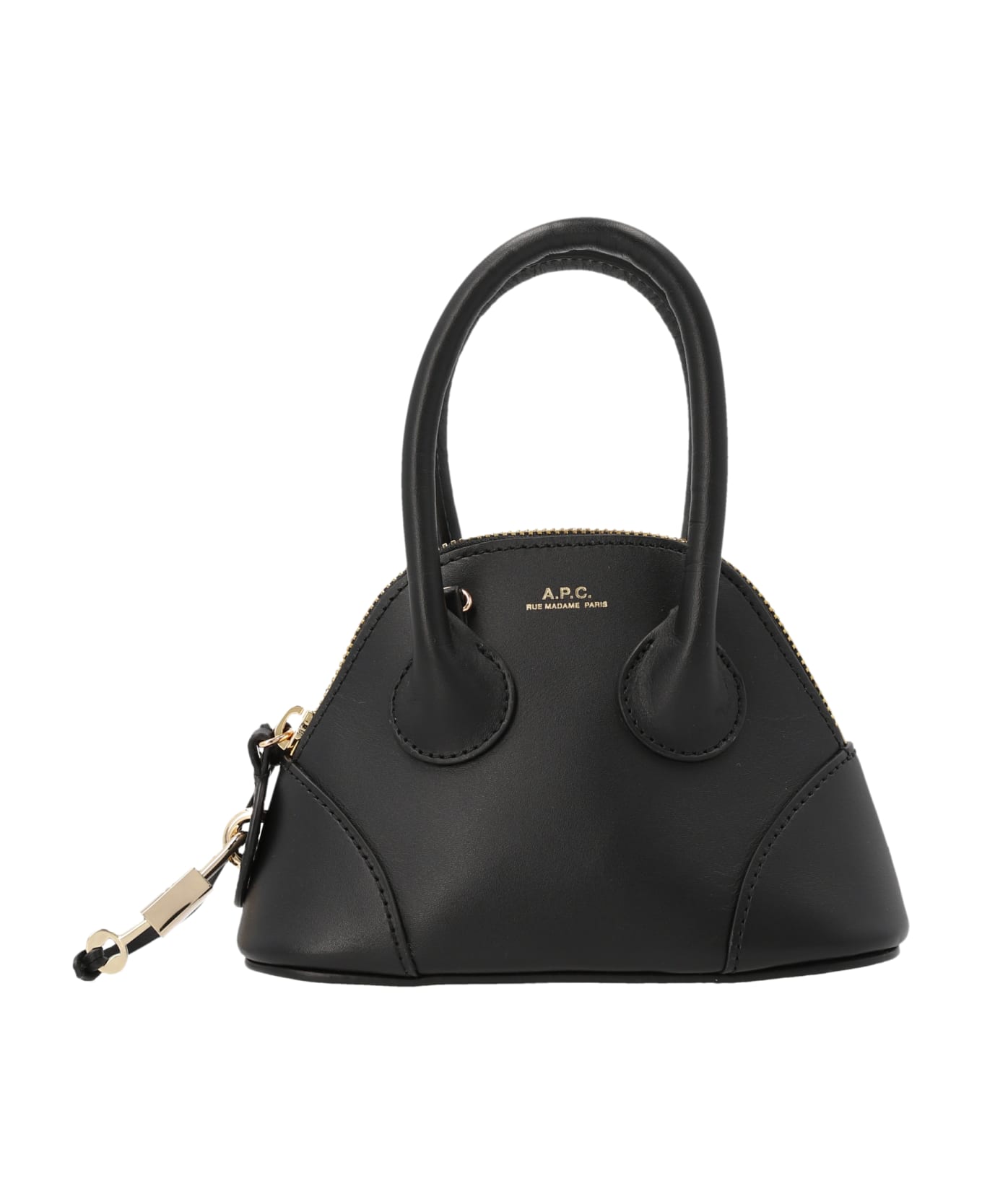 'Emma' mini leather crossbody bag with top handle, adjustable shoulder strap, zip closure. Composition:
