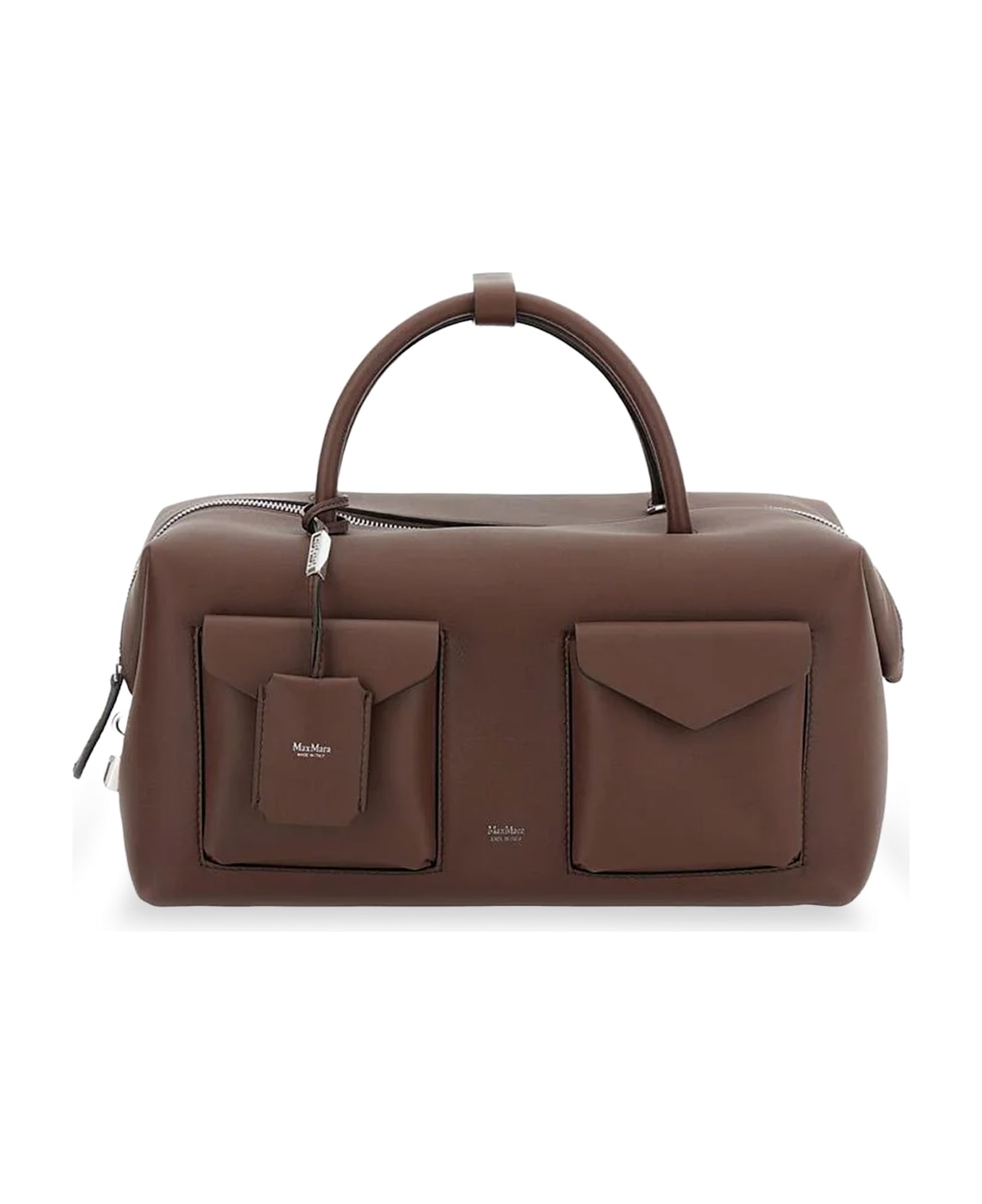 Double leather handle Removable handle Zip closure Double front pocket Front lettering logo Made in Italy Leather W: 38 cm, H: 18 cm, D: 17 cm SKU: 2614511011600001