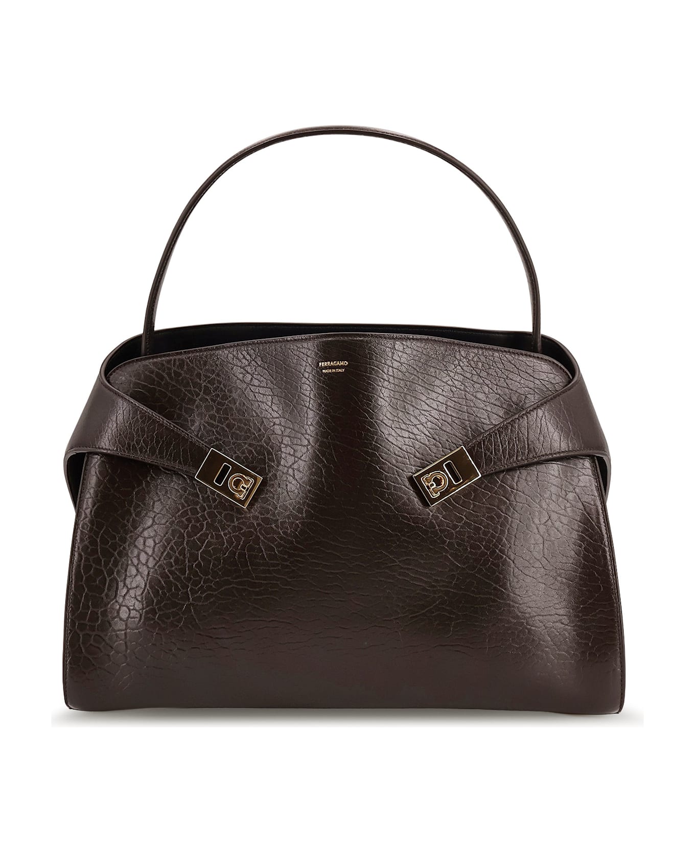 Leather handle Straps with metal Gancini detail Internal flap closure with magnetic buttons One zipped compartment Made in Italy Leather W: 39 cm, H: 26 cm, D: 12 cm SKU: 219939787837031