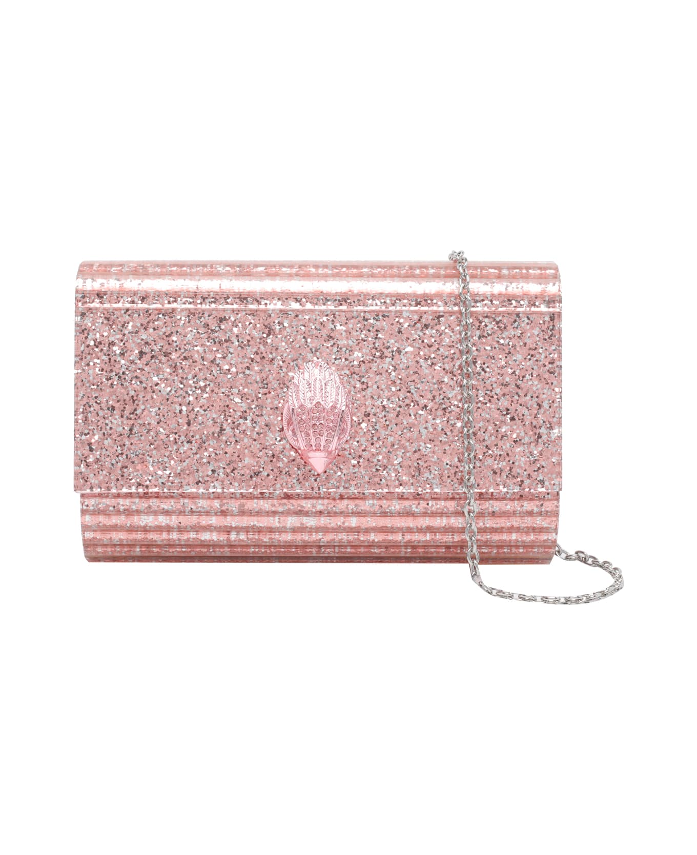 Kurt Geiger pink Party Eagle clutch, magnetic closure, inner slot, removable shoulder strap, glitter Composition: 95% Acrylic, 5% Metal