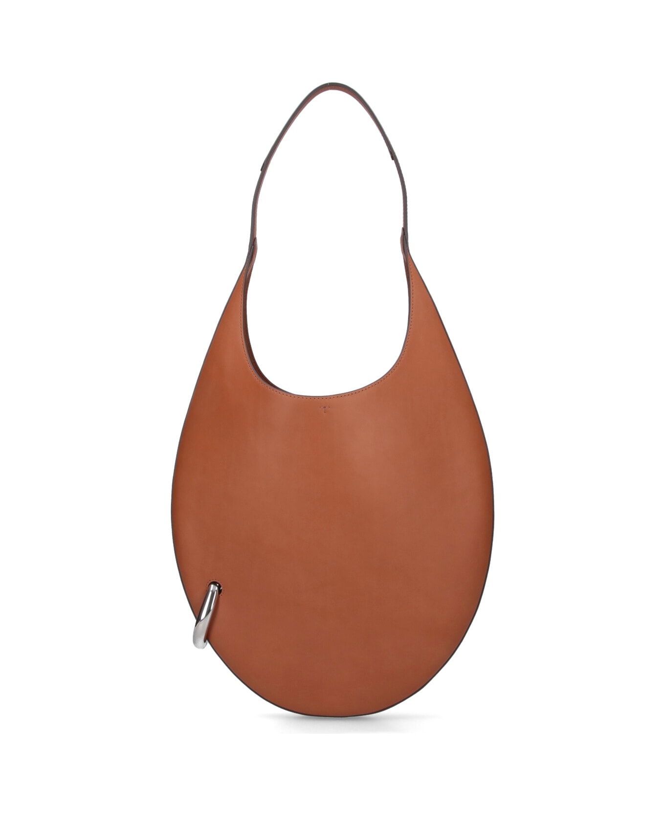 Tory Burch 'Pierced ' large brown leather hobo bag with tie closure, removable metal ring on the bottom, single inner compartment, inner zipper strap.