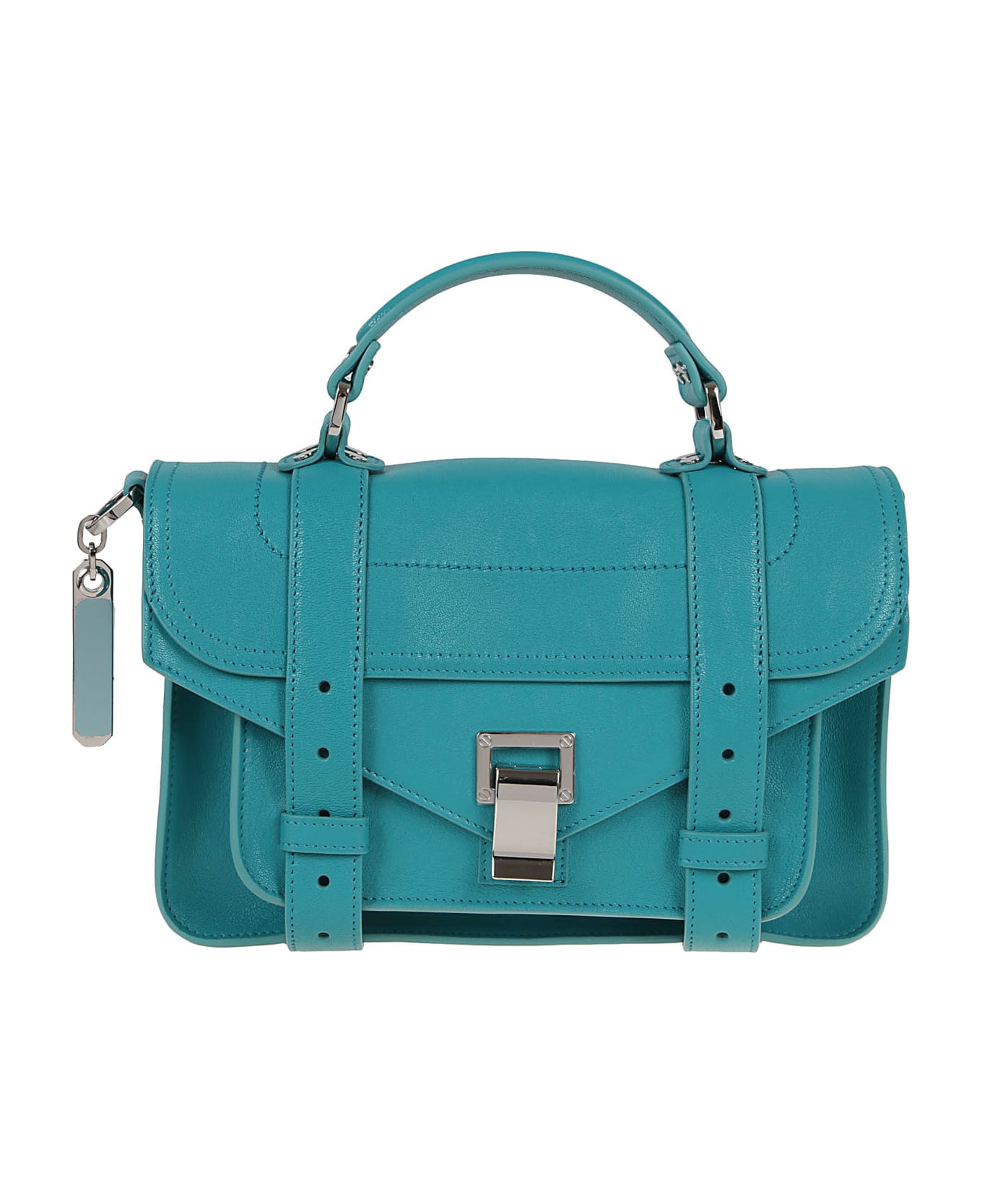 PS1 Tiny bag in dark navy colored lambskin BY PROENZA SCHOULER. Single internal compartment with internal pocket with zip closure; rear bellows pocket. Featuring a hinged model closure with a silver metallic closure like the other metal parts. It can be worn for less, thanks to the round handle in the upper part; and shoulder strap present inside adjustable and removable. Ideal to be worn both for a casual outfit and for a more elegant outfit. A must of the brand, present in all collections with the novelty of sizes and colors!