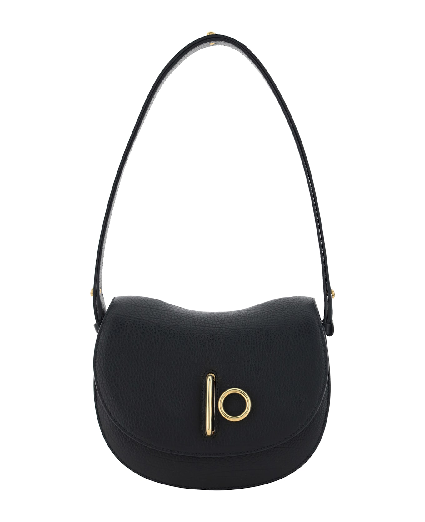 Leather rocking horse shoulder bag by burberry features a saddle-shaped knurled leather design, an adjustable flat shoulder strap, front closure via a flap with a b-shaped clasp, iconic equestrian knight brand logo engraved on the back, single interior compartment.