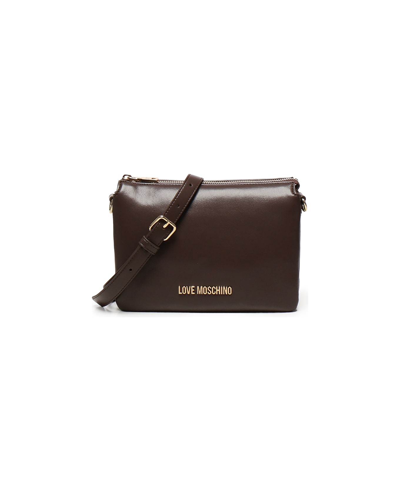 -Zip closure -Lettering logo on the front -Adjustable and removable shoulder strap -Dimensions: 23 x 16 x 9 cm -Color: Dark Brown