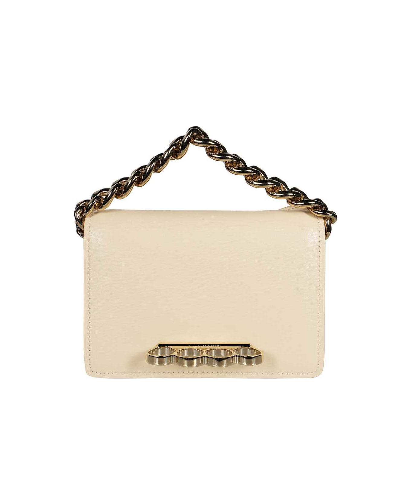 Magnetic flap closure chain handle crystals four ring detail internal flat pocket one card slot adjustable leather shoulder strap aged gold-tone metal hardware leather lining width: 17 cm height: 12 cm depth: 5 cm strap: 100 cm 100% calf Composition: 100% % Calf