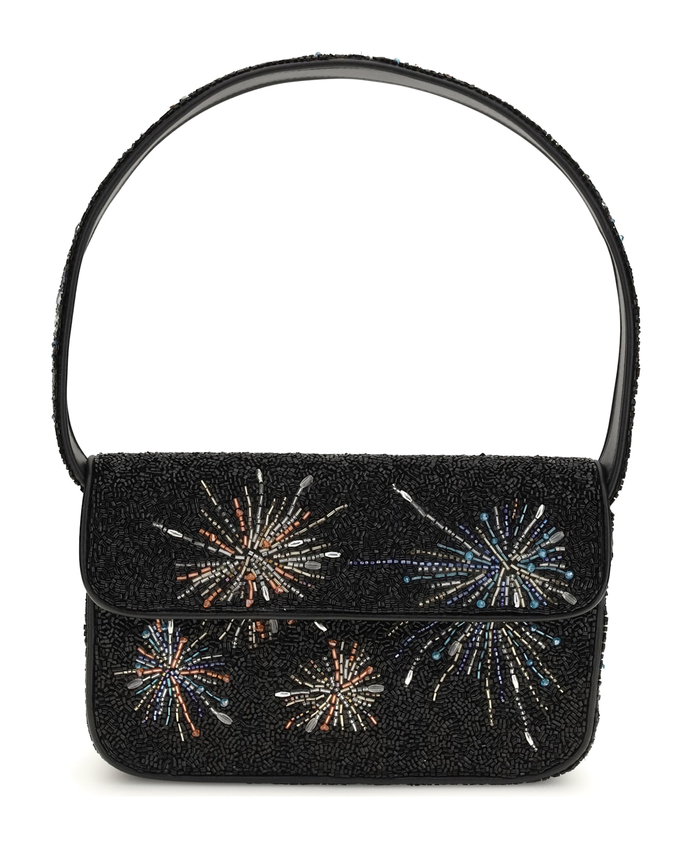 The tommy fireworks shoulder bag by staud combines craftsmanship with contemporary style. hand-beaded and trimmed with vegan leather, it features a single flap closure, an interior zipper, and a back slip pocket for a sleek and functional design.