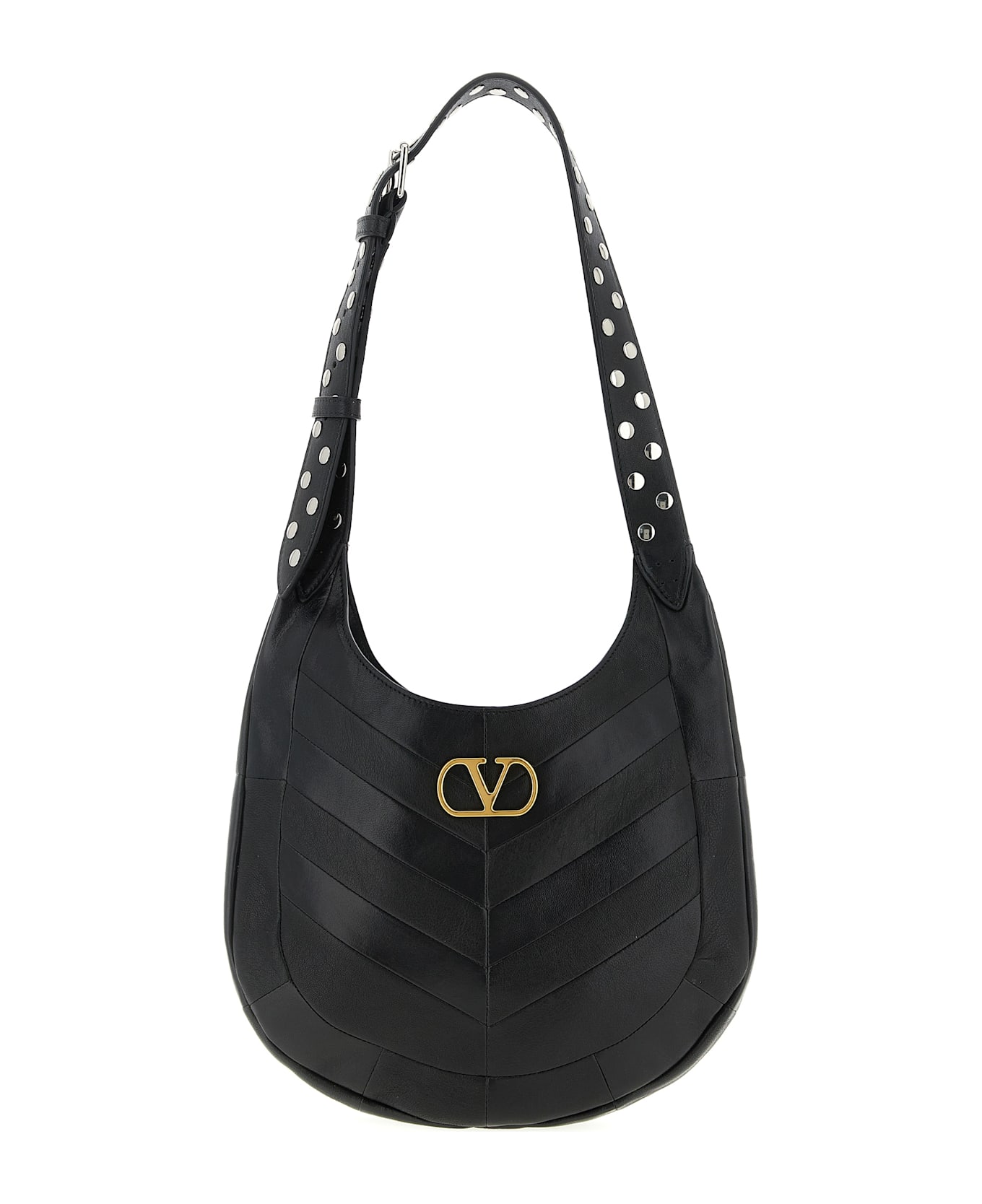 Small 'Hoboho' shoulder bag with patchwork processing in glossy nappa leather and matte chevron pattern, VLogo Signature metallic antiqued effect on the front, nappa lining, adjustable shoulder strap with applied metal studs. Composition: 100% lamb leather (Ovis aries)