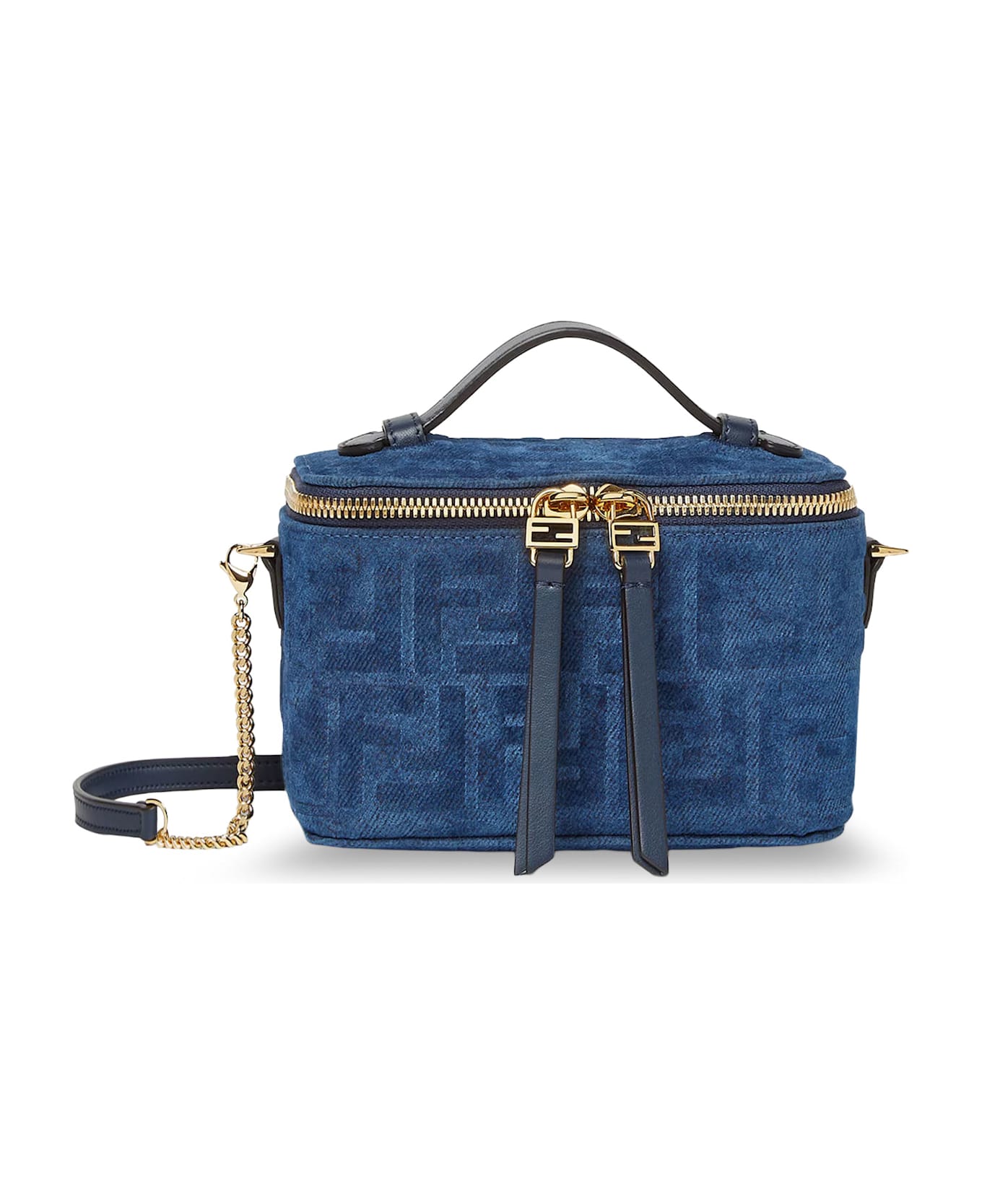 All-around zip closure Leather handle and removable chain shoulder strap One internal flat pocket Made in Italy FF jacquard fabric/leather Lining: cotton W: 16 cm x H: 11 cm x D: 8 cm SKU: 8BS108AVR6F1UJW