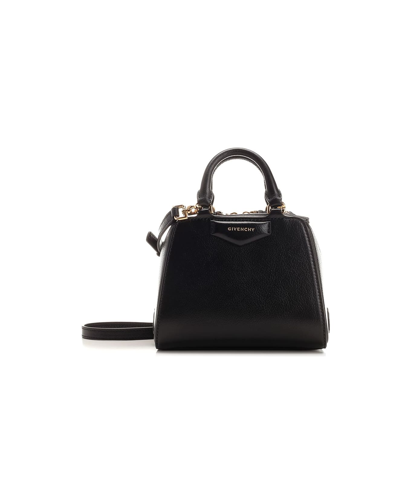 "Antigona Cube" nano bag from Givenchy, with top zip closure, adjustable and removable leather shoulder strap, embossed GIVENCHY signature on the front and 4G logo on the back, gold-finish metal details.