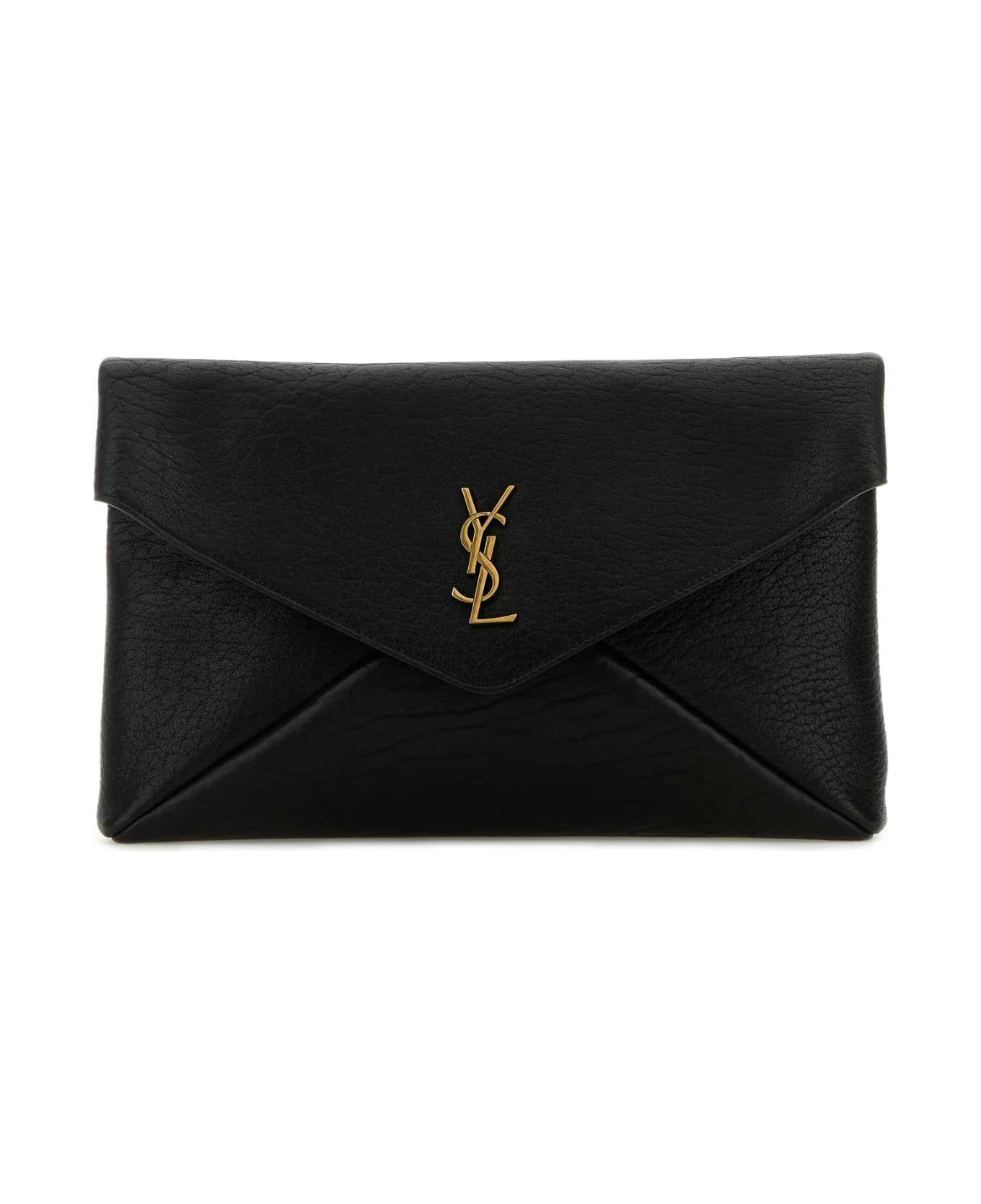 Black Leather Envelope Cassandre Pouch from Saint Laurent