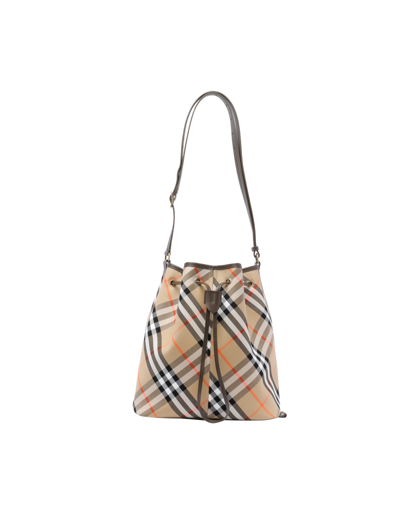 Burberry beige Check bucket bag, coulisse closure, adaptable strap, check motif