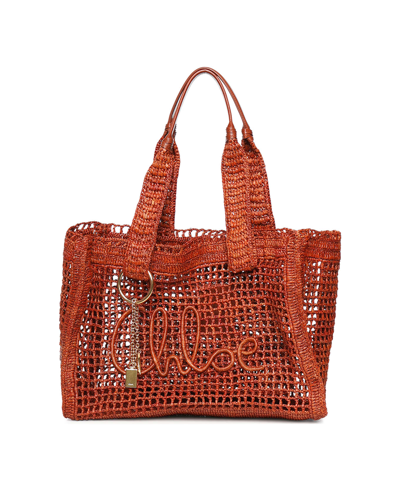 - Made of raffia with leather details - Two top handles - Tone-on-tone logo lettering - Can be carried by hand or over the shoulder - Dimensions: 37 x 26 x 13. 5 cm - Designer color: Clay Brown