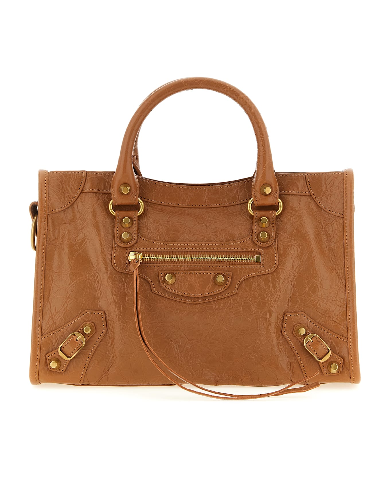 Arena Storico 'Le City S' lambskin handbag with antiqued gold studs, double fixed handle, top zip closure, front zip pocket, cotton canvas lining, adjustable and removable shoulder strap. Composition: 100% lamb leather (Ovis aries)