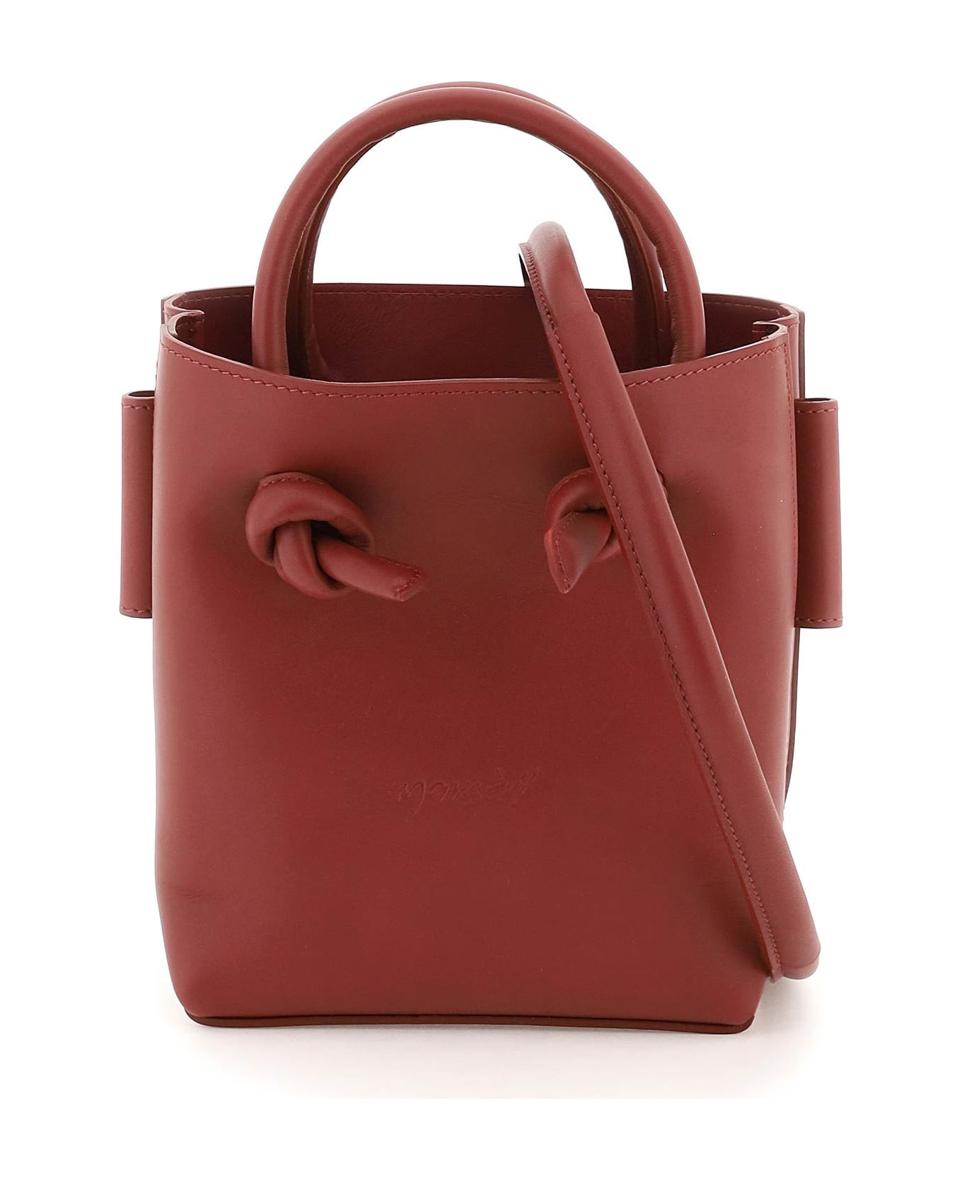 Nodino bag by Marsèll handcrafted in soft calf leather, characterized by double top handle and shoulder strap in tubular leather with knotted ends. Debossed logo on front. Leather interior with two compartments divided by a middle slit pocket. Antiquated ruthenium-finished metalware.