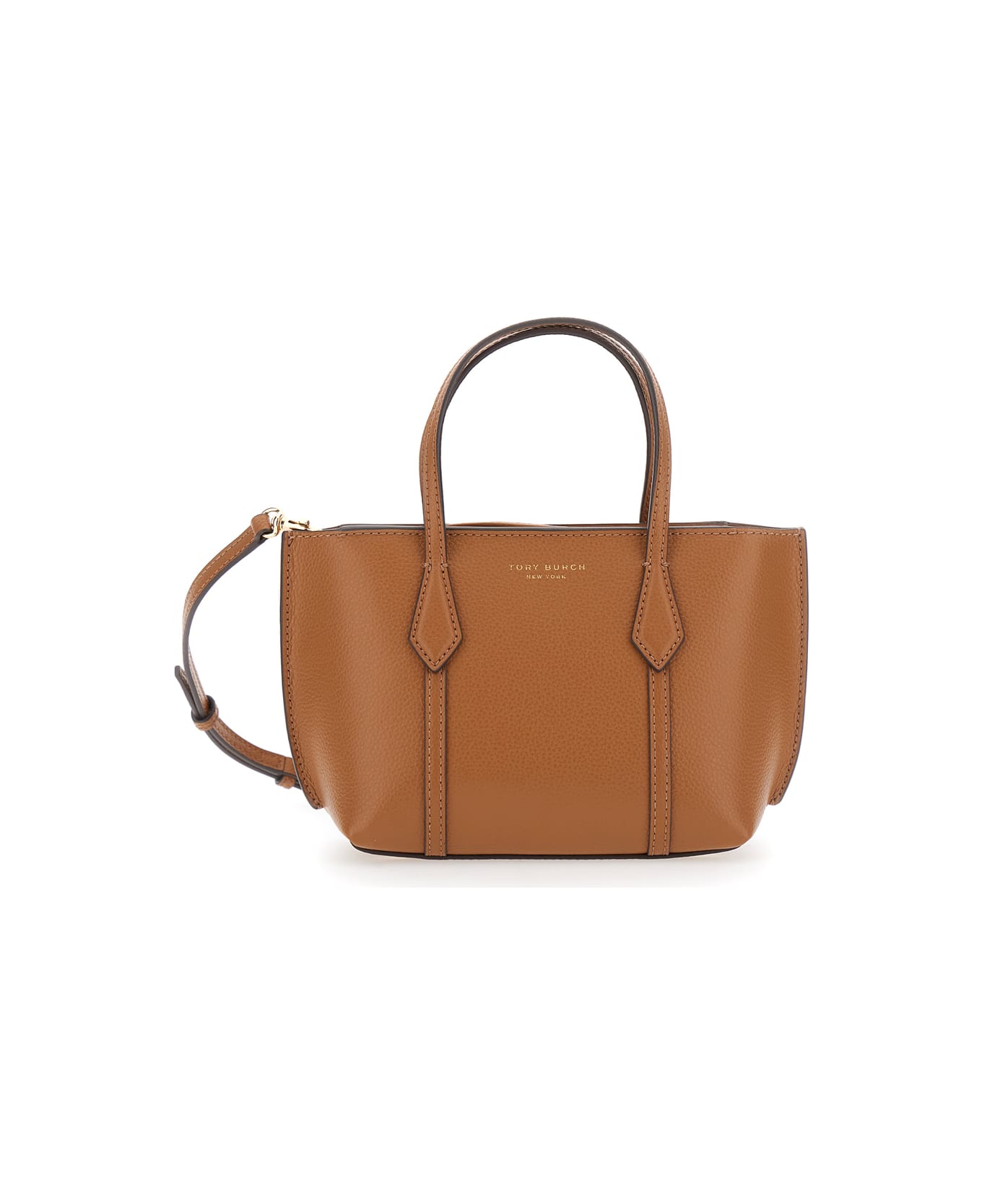 'perry' Brown Handbag With Adjustable And Removable Shoulder Strap And Embossed Logo Lettering On The Front In Grained Leather Woman