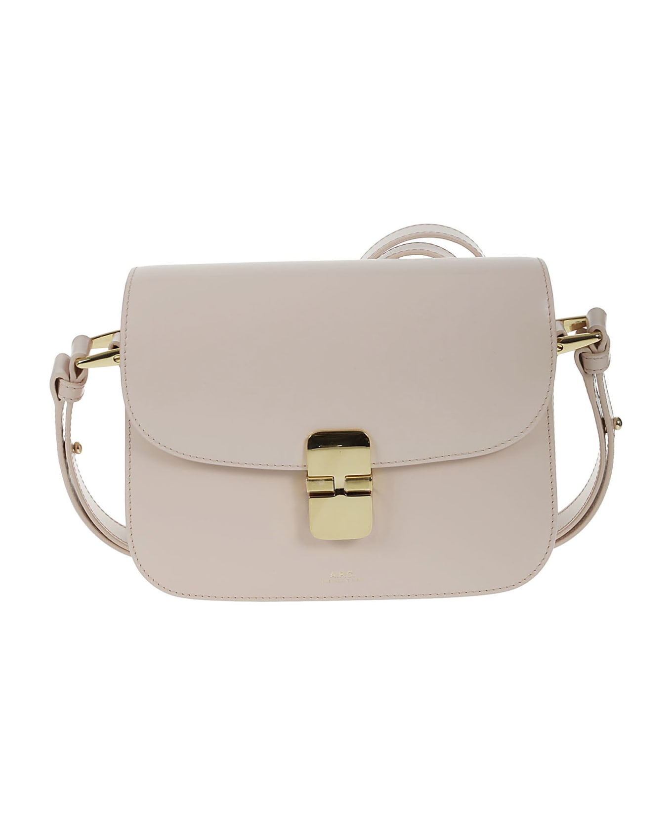 A. P. C. Pink leather bag, buckle closure, adjustable shoulder strap, logo detail. Composition: 100% Zh