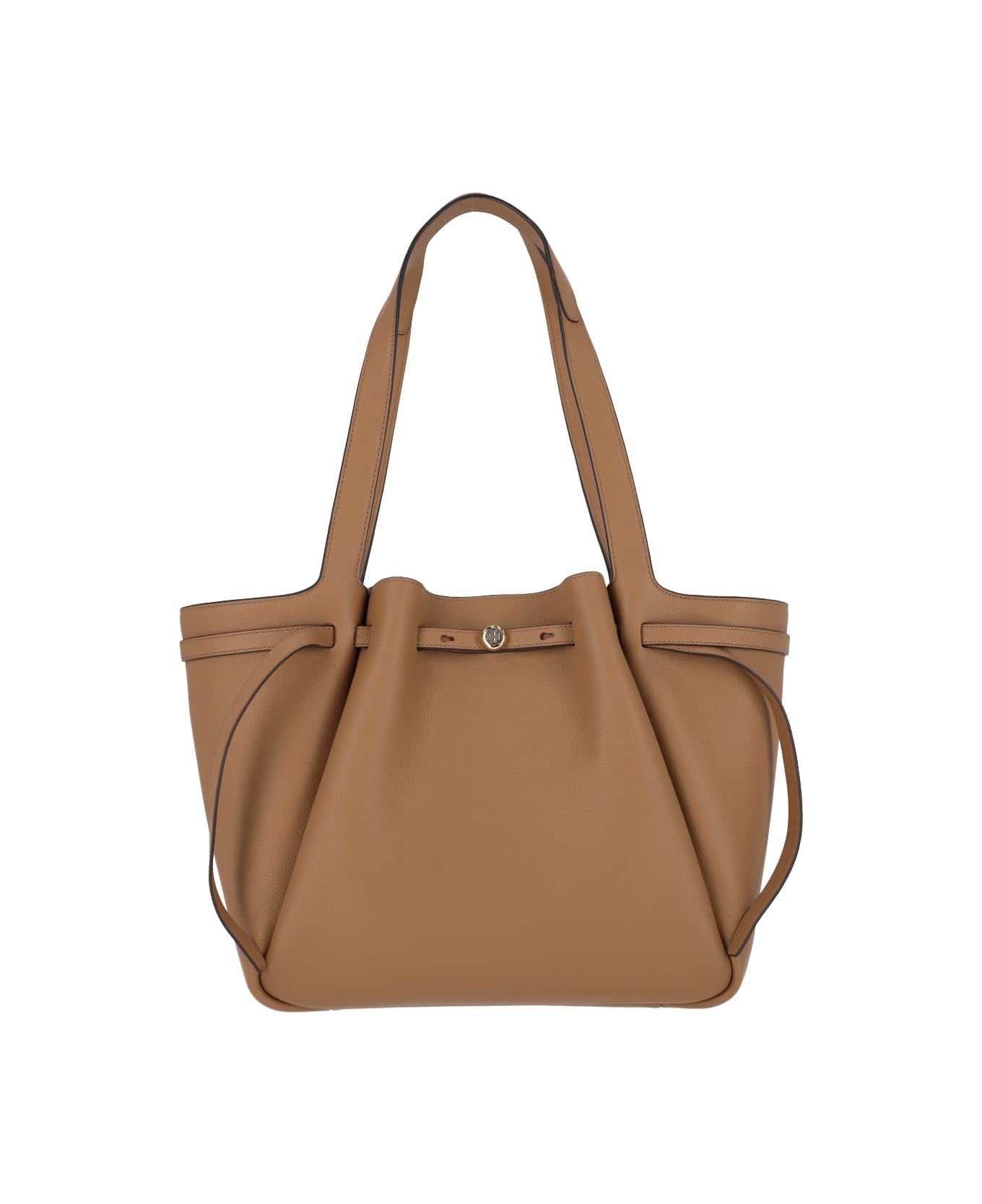 - Shoulder Bag "Romy" in beige pebbled leather - two top handles - metal logo detail on the front - one internal zip pocket - one main internal compartment